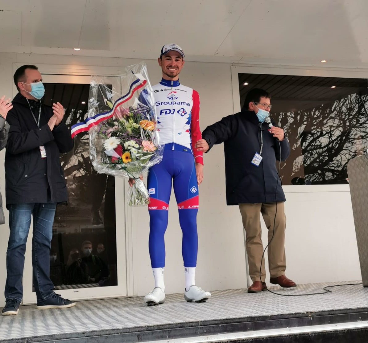 La soixante-troisième édition de Paris-Troyes sonnait pour la « Conti » Groupama-FDJ le début de la saison sur le territoire hexagonal. Au sortir de deux prestations encourageantes sur des épreuves de classe 1 en Belgique, les hommes de Jérôme Gannat avaient évidemment à cœur de poursuivre sur leur lancée. Pour ce faire, il fallait être sur le qui-vive dès le départ de Nogent-sur-Seine dimanche. « On savait que ce serait une course mouvementée dès le départ, expliquait Antoine Raugel. On s’attendait à un vrai départ de cyclo-cross et on était tous mobilisés à l’avant pour accrocher les premières bordures. Ça n’a pas cassé mais on a continué à être offensifs. J’ai vu un gros groupe sortir et j’ai fait le jump seul. Je me suis retrouvé dans un beau groupe avec de bonnes équipes ». Au terme d’une trentaine de kilomètres de bagarre, c’est en effet un groupe de treize hommes qui est parvenu à ouvrir une brèche. « L’objectif fixé au briefing était d’intégrer les gros coups, avec des équipes intéressantes, précisait Jérôme Gannat. C’était bien le cas. On savait que l’échappée pouvait faire un bon bout de chemin, mais le fait qu’elle soit assez conséquente et qu’elle comprenne des ProTeams a largement favorisé la chose ».