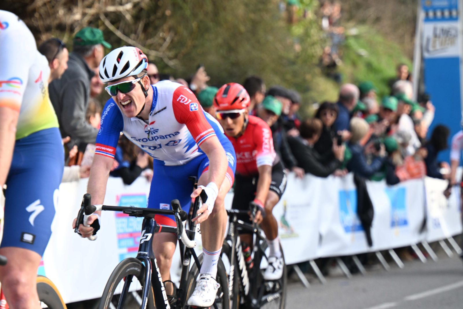 Dans le col de l’Aire dei Masco (6,5 km à 5%), dont le sommet culminait à un peu plus de vingt-cinq kilomètres de la ligne, le peloton s’est tout simplement réduit de moitié. Beaucoup de sprinteurs ont été distancés, mais pas Arnaud Démare, encore accompagné de son nouvel équipier Michael Storer à la bascule. La chasse a demeuré effrénée au sein du peloton en raison de la belle résistance d’Alexis Gougeard, dernier rescapé de l’échappée mais bel et bien repris à deux bornes du but. « Michael a replacé Arnaud comme il fallait au bon moment, se satisfaisait Thierry. Il a fait du bon boulot puis Arnaud savait ce qu’il avait à faire. C’était une arrivée pour hommes forts et ce sont les cuisses qui ont parlé ». Bien positionné à l’amorce de ce sprint, dans un final en légère montée, Arnaud Démare a alors lâché les forces qui lui restait encore, sans que cela ne soit toutefois suffisant pour disputer la victoire à Bryan Coquard. « On n’est pas si nombreux à l’arrivée, relevait Arnaud. Il fallait déjà passer le talus, je m’attendais à ce que ce soit difficile, donc j’étais déjà content d’être là. Le sprint me convenait bien, c’était une belle arrivée, mais je manque encore de rythme. J’étais à bout dans le sprint, j’ai donné le maximum. Je me sentais bien mais il faut que j’engrange encore un peu de rythme. Ce n’était que mon deuxième vrai jour de course aujourd’hui ».