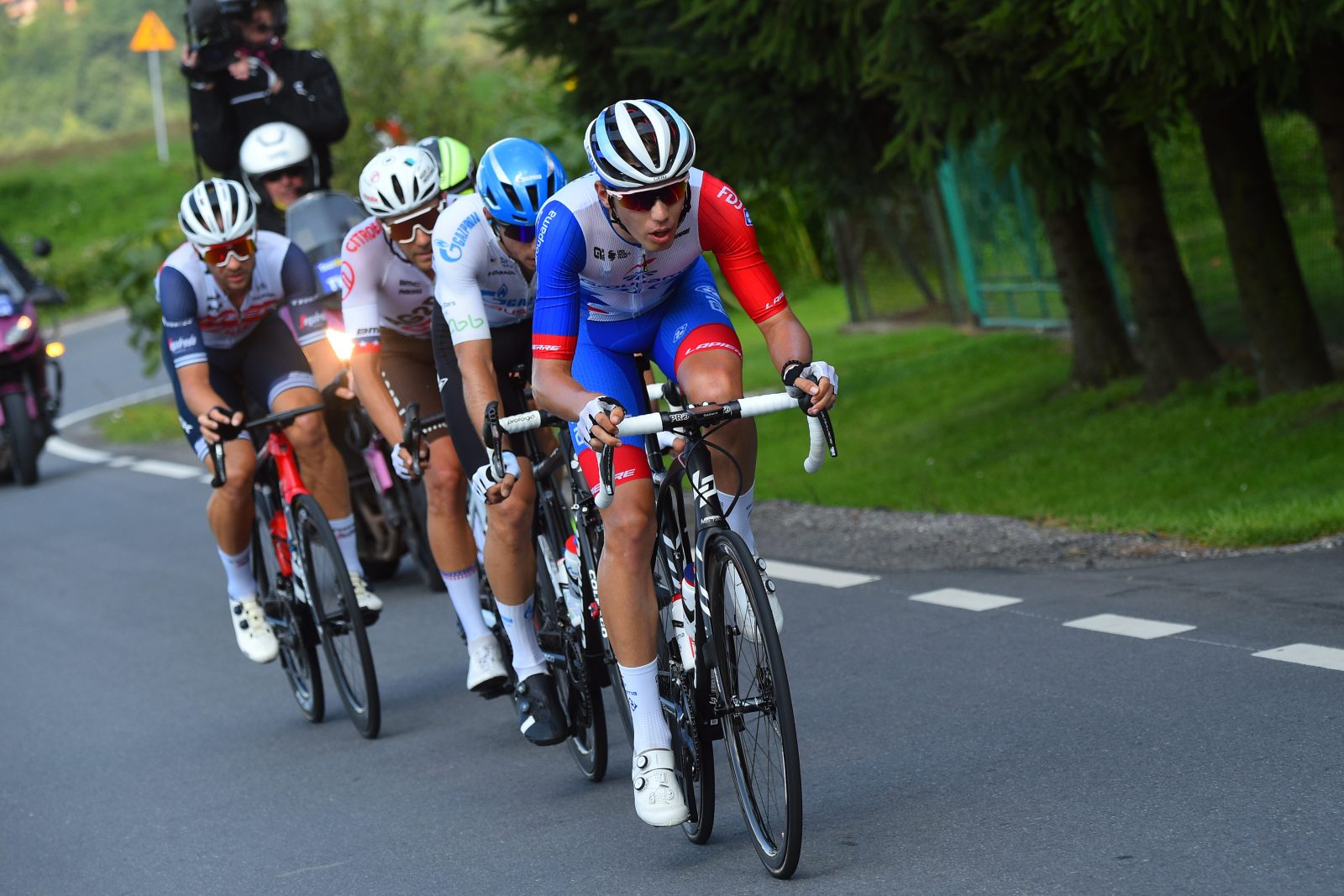 Légèrement frustrée d’avoir manqué la conséquente échappée de la veille, l’Équipe cycliste Groupama-FDJ s’est montrée des plus actives ce jeudi à la sortie de Tarnów, ville-départ de la quatrième étape du Tour de Pologne. « On avait désigné quelques coureurs pour aller de l’avant aujourd’hui, notamment Attila, Clément et Antoine, expliquait Frédéric Guesdon. Au vu du final, nous n’avions pas forcément besoin de tout le monde pour replacer Jake. C’est la raison pour laquelle nous avons donné carte blanche à certains ». Attila Valter est apparu en tête de peloton dès le baisser de drapeau, mais c’est Clément Davy qui a ouvert la première brèche avec Jonas Rickaert (Alpecin-Fenix) avant d’être rappelé à l’ordre par le peloton. La bonne échappée s’est finalement constituée après une dizaine de kilomètres, et c’est bien le Hongrois porteur du maillot rose sur le Giro qui parvenait à y prendre place. « J’étais un peu déçu après la deuxième étape, expliquait l’intéressé. Je n’avais pas forcément de mauvaises jambes mais je m’étais peut-être trop mis de pression. Je n’avais aussi pas couru face à un tel peloton depuis un moment et je ne me sentais pas à l’aise. Il a fallu oublier cette journée et je courais aujourd’hui sans pression et j’étais content de prendre ma chance en échappée. J’ai attaqué seul en espérant qu’un gros groupe me rejoigne. Malheureusement, seuls quatre coureurs ont fait la jonction et l’un d’entre eux, proche au général, s’est relevé après le sprint intermédiaire. Nous nous sommes retrouvés à quatre et je savais dès lors que ça allait être compliqué, mais c’est aussi pourquoi j’avais pris l’échappée : pour travailler ».