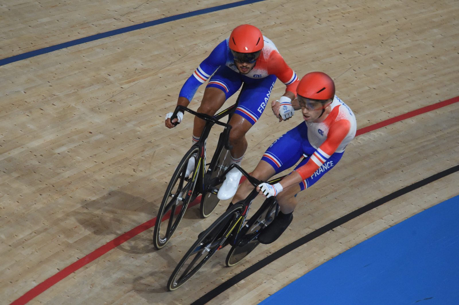 Grâce un départ tonitruant et quatre autre points grappillés au cinquième et huitième sprints, la paire française se plaçait ainsi troisième du classement provisoire à la mi-course. Et c’est à ce moment précis que le vrai tournant s’est produit. « Ça s’est posé, j’ai senti qu’on était bien, et j’ai essayé d’anticiper un sprint, poursuivait Benjamin. Je ne prévoyais pas de partir en échappée, je voulais juste faire cinq points. Mais quand j’ai vu le trou qu’on avait réussi à faire, je me suis dit qu’il fallait foncer tête baissée ». C’est alors ce qu’ont fait les deux hommes, menant seuls pendant une vingtaine de tours et remportant la bagatelle de trois sprints (donc 15 points) dans l’affaire. « C’était vraiment très dur, reprenait le pistard de 25 ans. Physiquement, c’est un effort énorme après déjà 25-30 min de course. Mais j’ai dit à Donavan qu’on était en train de construire la médaille et qu’il ne fallait rien lâcher. On est allés chercher des sprints mais le plus dur a finalement été de reprendre les roues derrière ». À 70 tours de l’arrivée, les Tricolores occupaient alors la tête du classement provisoire, mais il a dès lors fallu faire de la résistance face à des doublettes moins entamées. « On s’est fait un peu contrer, mais c’était normal après tous les efforts consentis, ajoutait Benjamin. L’objectif était juste de ne pas exploser. C’était aussi dur dans la tête que dans les jambes. On prenait des relais, mais avec le seul but de tenir et ne pas péter. Moi qui d’habitude compte les points, je n’étais absolument plus dans la gestion. Je prenais mon relais et je faisais mon bout pour le redonner à Donavan. On n’a rien gardé. C’était la course la plus dure de ma vie, je n’ai jamais fini une course dans cet état là, mais ça en valait la peine ».
