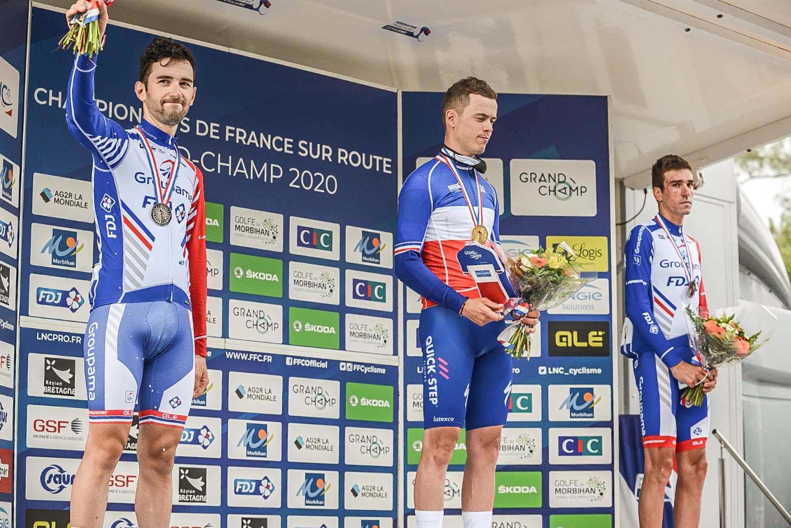 Tout au long des 43,600 kilomètres du parcours de Grand-Champ, Benjamin Thomas a ardemment défendu son maillot tricolore de Champion de France du chrono, mais ce vendredi, il a néanmoins dû rendre sa tunique pour un déficit de simplement six secondes sur la ligne d’arrivée. Rémi Cavagna l’a finalement devancé pour l’or alors que c’est son coéquipier Bruno Armirail qui a hérité d’une très belle médaille de bronze. L’Équipe WorldTour Groupama-FDJ a placé ses quatre représentants dans le top 7 tandis que Clément Davy a réussi le meilleur temps (15e) parmi les coureurs de la Conti.