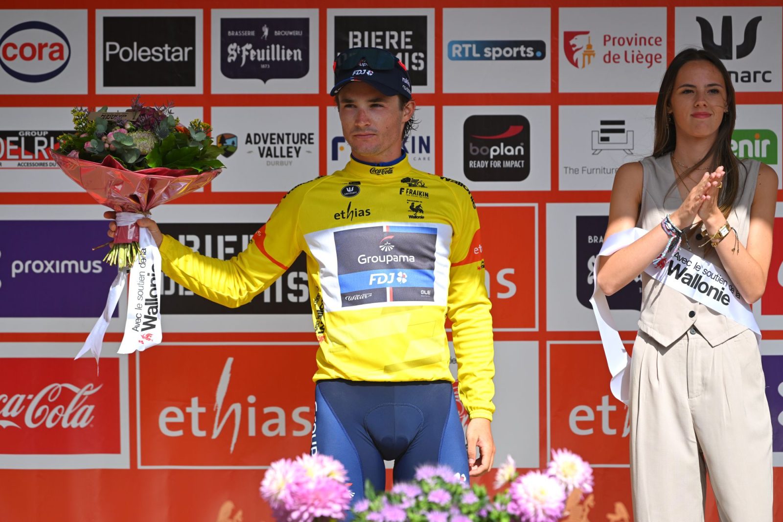 Depuis Saint-Ghislain dans la Province du Hainaut, le Tour de Wallonie filait plein Est ce mardi pour rejoindre Ouffet, dans la Province de Liège. Près de 190 kilomètres composaient ce deuxième acte, quelque peu bosselé dans son final. Un premier passage par la ligne d’arrivée était prévu à une trentaine de kilomètres du but avant la côte décisive de Géromont (1,4 km à 8%) puis une remontée finale de quatre bornes à 4%. Contrairement à la veille, et alors qu’une échappée incluant Baptiste Veistroffer, Cole Kessler, Johan Jacob et Pascal Eenkhoorn s’est formée dès le début de course, l’Équipe cycliste Groupama-FDJ a laissé la responsabilité de la course à d’autres ce mardi. « Il y avait beaucoup de vent en début de course, donc ça a été très nerveux pendant une quarantaine de kilomètres », confiait malgré tout Jussi Veikkanen. Le groupe de tête s’est par ailleurs réduit à trois unités avant la mi-course, et le paquet l’a constamment gardé à portée de fusil. Au moment du premier passage sur la ligne, seules deux petites minutes séparaient les deux échelons de la course, et cet écart s’est résorbé de manière éclair puisque le trio échappé a rendu les armes au pied de la côte de Géromont, à quatorze kilomètres de la ligne.