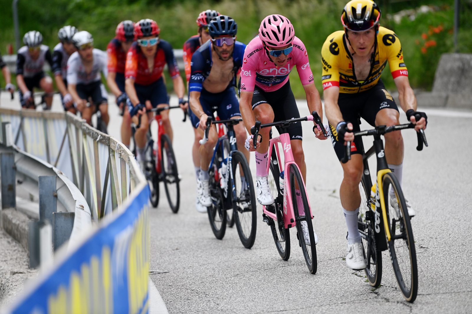 En tête, une grosse vingtaine d’hommes ont pu bénéficier d’un avantage maximal d’environ cinq minutes. Parmi eux, Aurélien Paret-Peintre, pointé à un peu plus de quatre minutes au général, constituait alors la plus grande menace pour le maillot rose. L’allure s’est toutefois nettement accélérée dans le peloton à l’occasion de l’avant-dernière difficulté, la montée de Serrada, mais Rudy Molard, Thibaut Pinot et Bruno Armirail étaient toujours bien là parmi une quarantaine d’hommes. Les coureurs de tête n’ont finalement entamé la montée finale qu’avec un capital temps de trois minutes, et le tempo n’a pas faibli parmi les favoris, bien au contraire. Jumbo-Visma puis UAE Team Emirates ont franchement haussé le ton, et ne demeuraient plus qu’une vingtaine d’hommes au contact à mi-ascension du Monte Bondone. Après un léger replat, la guerre d’usure s’est perpétuée, et Bruno Armirail, langue tirée après de nombreux kilomètres en souffrance, a été contraint de laisser filer le groupe. « Ça a été une journée très très difficile, commentait l’intéressé. Les gars de l’équipe ont encore fait un travail énorme. Je me suis accroché au maximum, mais à dix kilomètres, je n’ai pas pu suivre. Je suis tout de même content, car quand je m’écarte, il reste moins de vingt mecs, et pas n’importe lesquels. Ça fait plaisir d’avoir de telles sensations. J’ai ensuite tout donné jusqu’à la ligne. C’est le maillot rose, je me devais d’aller jusqu’au bout et ne rien regretter. J’ai passé trois journées et deux étapes extraordinaires. Ce maillot aura certainement changé une partie de ma carrière. J’ai profité à bloc ».