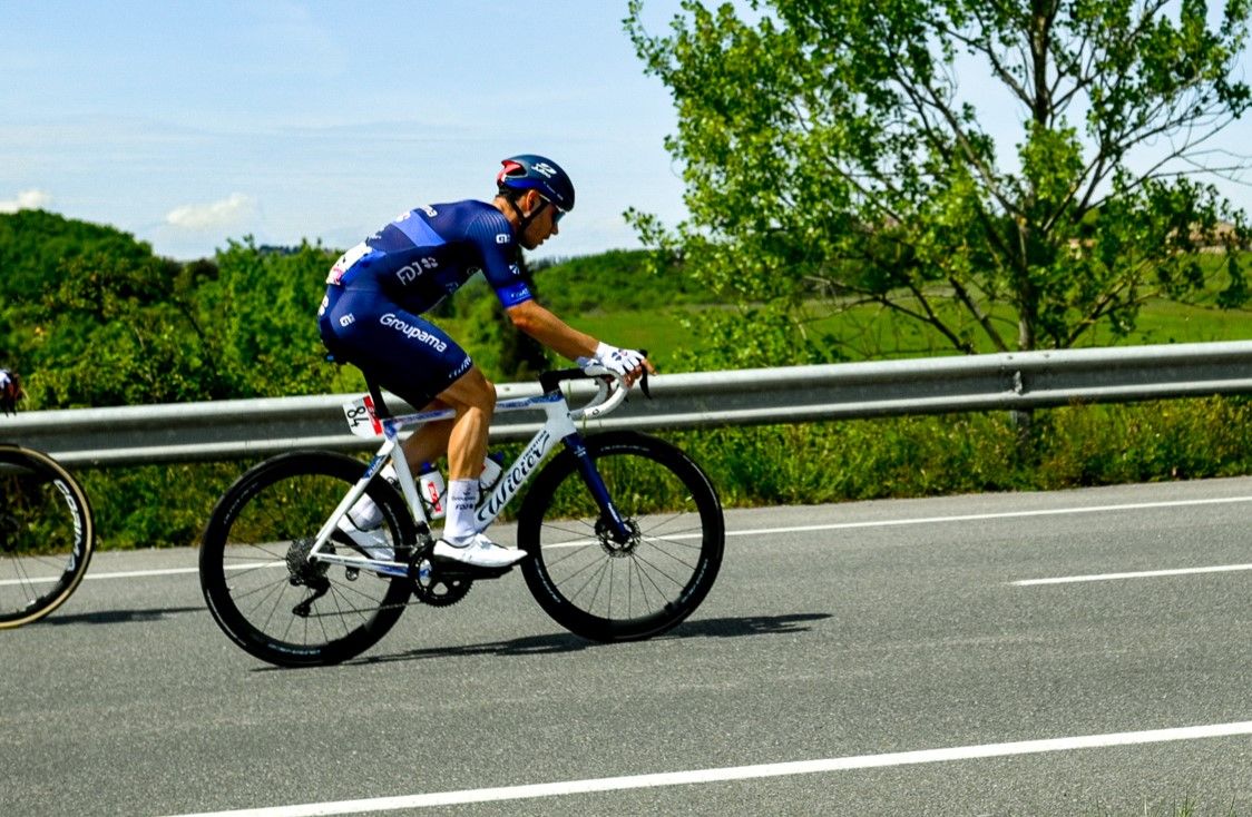 Au lendemain de l’étape reine, le Tour de Slovénie arrivait à son terme ce dimanche via une cinquième étape majoritairement rectiligne, mais qui incluait deux bosses dans les cinquante kilomètres que certains comptaient bien mettre à profit. À moins de dix bornes du but, c’est même un « mur » de 1500 mètres à 10% qui se dressait sur la route des coureurs. L’idée d’un sprint massif a de fait été assez vite écartée, et l’Équipe cycliste Groupama-FDJ avait pris le parti d’accompagner l’échappée du jour. Après une dizaine de kilomètres, Clément Davy s’est ainsi extirpé une première fois, avec Alexander Kristoff notamment, mais ce n’est qu’après une quarantaine de kilomètres que le bon coup s’est enfin dessiné. Le Mayennais était encore de la partie, tout comme Alessandro De Marchi, Martin Marcellusi, Vegard Stake Laengen et une dizaine d’autres coureurs. « Le but était de prendre l’échappée avec Clément, mais elle n’était pas simple à prendre aujourd’hui, soutenait William Green. Ça a donc été un bel effort de sa part. L’idée était qu’il soutienne Enzo et Brieuc plus tard dans la course, quand ça attaquerait dans les bosses du final ».