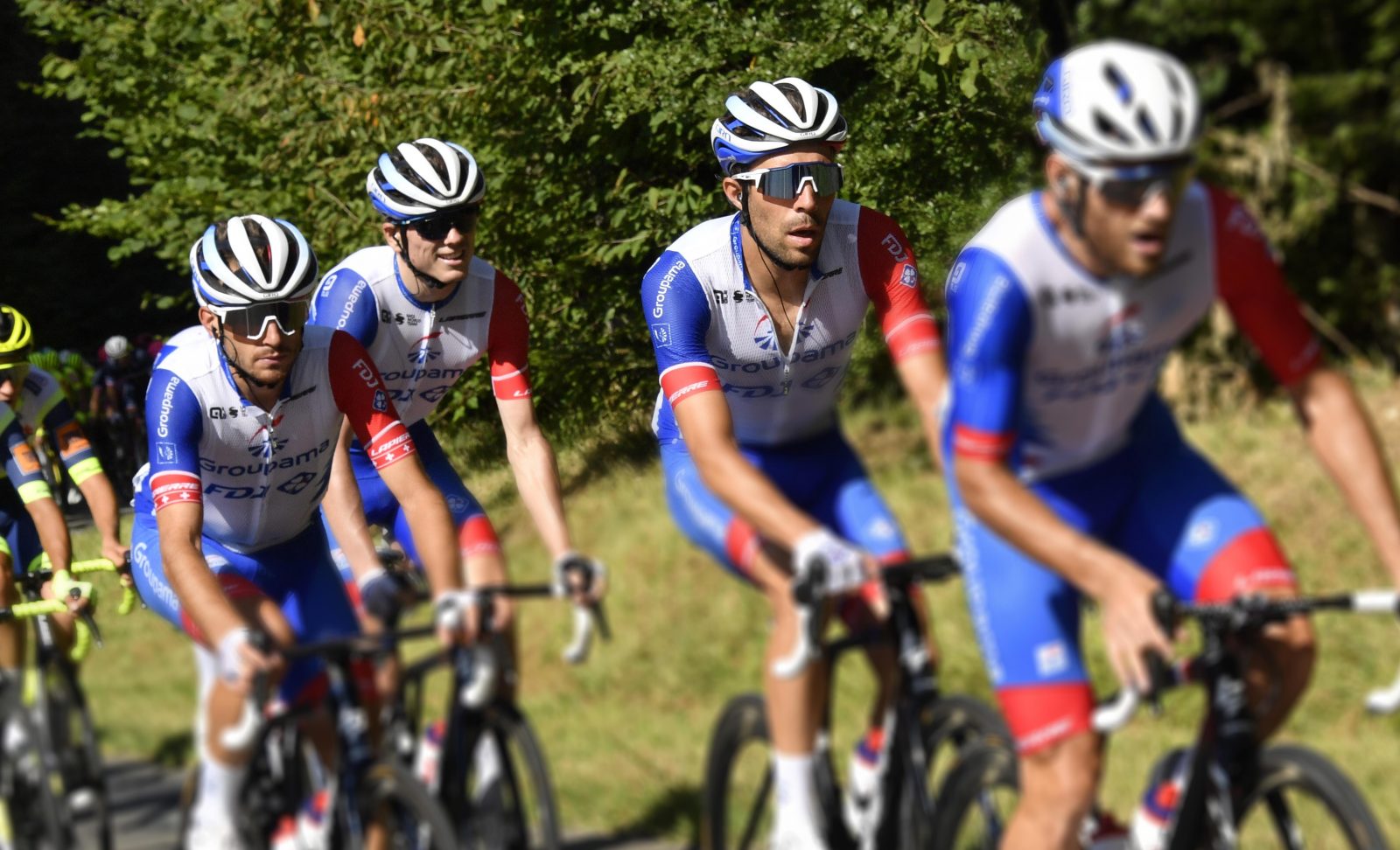 C’est un groupe à fière allure qui s’est présenté ce mardi après-midi sur le « podium signature » à Luxembourg. Autour de Thibaut Pinot et David Gaudu, Sébastien Reichenbach, Attila Valter, Bruno Armirail ainsi que Matthieu Ladagnous formaient l’escouade Groupama-FDJ pour ce séjour de compétition dans le Grand-Duché. Dans cette étape d’ouverture, six hommes ont assez vite pris les commandes avec la bénédiction du peloton. Jack Bauer (BikeExchange), Sebastian Schönberger (B&B Hotels p/b KTM), Kenny Molly (Bingoal-Pauwels Sauces WB), Angel Fuentes Paniego (Burgos-BH) Evaldas Siskevicius (Delko), Emerson Oronte (Rally Cycling) ont même cumulé jusqu’à trois minutes d’avance. « L’étape était relativement courte (140 km) mais tout de même rythmée avec un milieu d’étape assez vallonné, présentait Sébastien Joly. On était d’abord parti avec l’objectif de bien se mettre en place aujourd’hui, d’autant plus qu’Attila intègre le groupe de Thibaut et David, et je souhaitais qu’il trouve un peu ses automatismes avec eux en vue des prochains jours. Dans un premier temps, il fallait mettre en place ces quelques repères ». L’équipe s’est de fait appliquée à bien courir groupée aux avant-postes, et cela lui a notamment permis de passer sans difficultés le moment chaud de la mi-course. « Étant donné que l’étape était courte et qu’il y avait de bons rouleurs à l’avant, notamment Jack Bauer, le peloton a vraiment dû s’employer, expliquait Sébastien. Cette portion à la mi-parcours était aussi propice. Il y avait une petite descente technique, le peloton a cassé en bas, puis se sont présentés une remontée un peu difficile et un plateau avec un peu de vent de côté. Ça a suffi à tendre, et à faire exploser un peu. C’est ce qui a permis d’avoir une belle course, bien dynamique. Le peloton était bien réduit pour la dernière partie ».