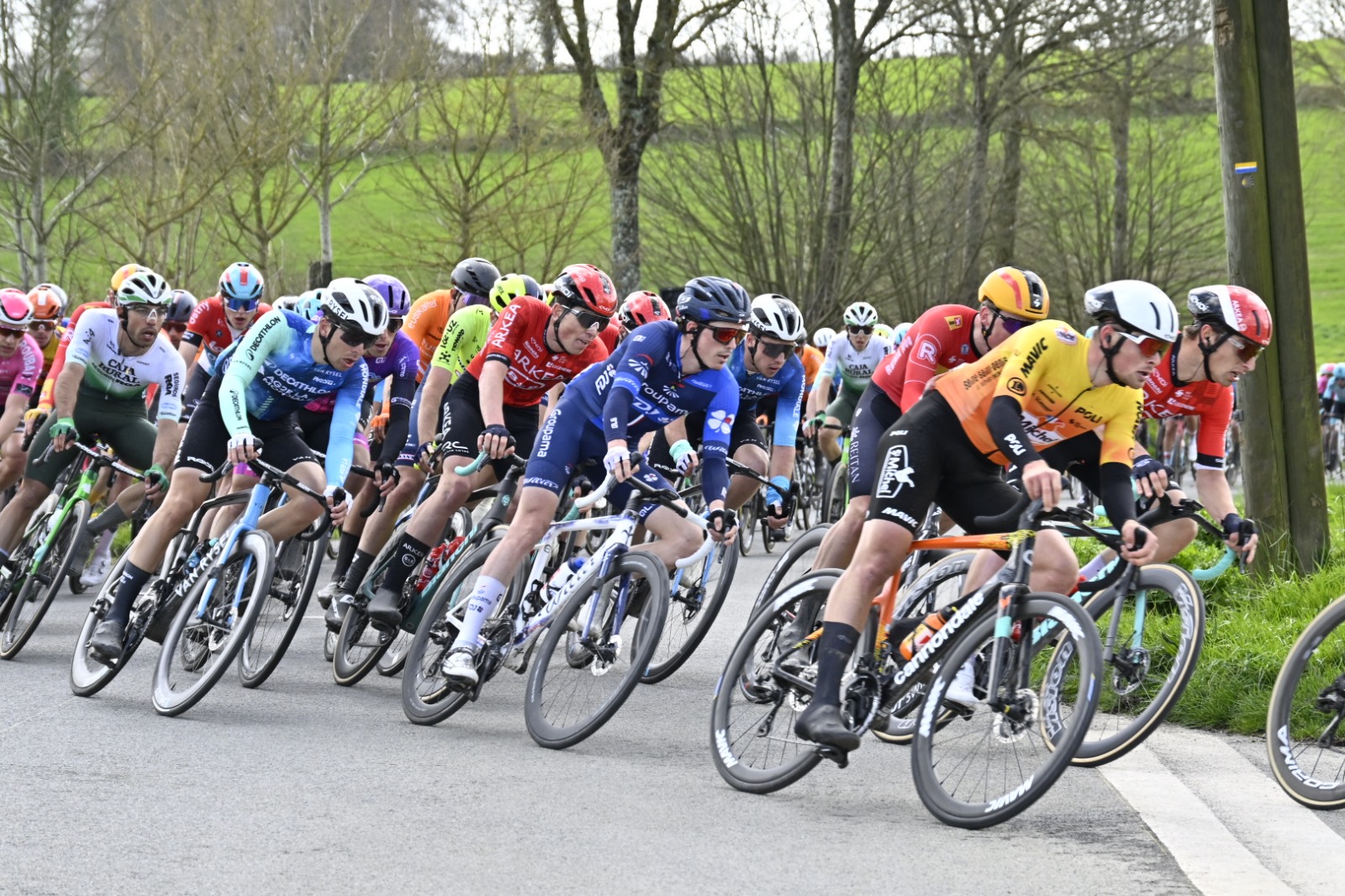 Avant que le deuxième Monument de l’année n’accapare tous les esprits ce week-end, le calendrier de la Coupe de France FDJ reprenait ses droits ce vendredi à l’occasion de sa septième manche à Vitré, en Ille-et-Vilaine. Le tracé habituel était proposé aux coureurs, avec une grande boucle de vingt kilomètres à parcourir cinq fois, et le circuit final de neuf bornes à répéter à huit reprises. Le tout sur un terrain casse-pattes, avec la côte de la Chênelière (900m à 5%) à chaque tour, et une arrivée en faux-plat montant sur la Rue de Brest. « En cas d’arrivée groupée, on avait Marc Sarreau et Noah Hobbs, exposait Thierry Bricaud. L’équipe était pratiquement similaire à celle de Paris-Camembert, mais avec David qui faisait sa rentrée. L’idée était qu’il fasse des efforts et retrouve des bonnes sensations en vue de la suite de la saison ». Tout d’abord, le peloton n’a laissé que Mathis Le Berre et Paul Hennequin prendre les devants après vingt kilomètres de bagarre. Le duo n’a pas non plus jouit d’une grosse marge de manœuvre, et leur avance n’était que d’une minute à l’entame des circuits locaux, à soixante-dix bornes du but. Le vent a d’abord secoué le peloton, David Gaudu a même orchestré une tentative de bordures, mais l’échappée a finalement été revue à cinq tours du but et tout s’est regroupé. Une nouvelle course a démarré dans la foulée, une dizaine d’hommes se sont extirpés, puis une dizaine d’autres les ont rejoints rejoints dans la côte de Chênelière, dont David Gaudu.