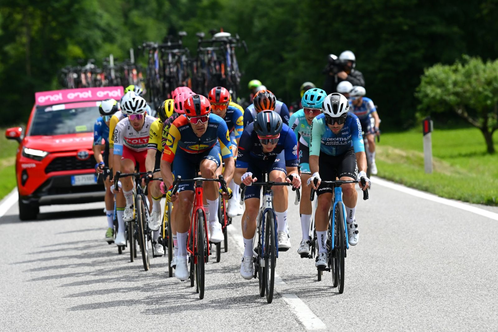 Après plus de soixante kilomètres, le peloton s’est enfin décidé à temporiser et l’échappée de dix-neuf hommes a pu prendre le large. « Quand j’ai regardé l’échappée, il n’y avait que des gros noms », expliquait Enzo. « On se doutait que ça allait être compliqué pour Enzo qui était avec des meilleurs grimpeurs et des coureurs en forme, confirmait Frédéric. Quatre coureurs avaient déjà gagné une étape sur le Giro cette année : Alaphilippe, Narvaez, Steinhauser et Sanchez. Le principal était d’avoir pu le mettre devant, puis le but était ensuite qu’il se fasse plaisir, donne le maximum et réalise le meilleur résultat possible. Le simple fait d’être dans l’échappée aujourd’hui dénote d’une bonne forme de sa part, car il n’y avait pas n’importe qui avec lui ». Le peloton s’est donc complètement désintéressé de la victoire d’étape, mais la bataille pour cette dernière s’est enclenchée trop tôt pour le jeune coureur de la Groupama-FDJ. « J’ai essayé de m’économiser au maximum pour être prêt pour la bosse raide en milieu de parcours, commentait-il. Malheureusement, je n’avais pas les jambes aujourd’hui pour jouer devant donc je me suis accroché au maximum dans le groupe auquel j’appartenais ».