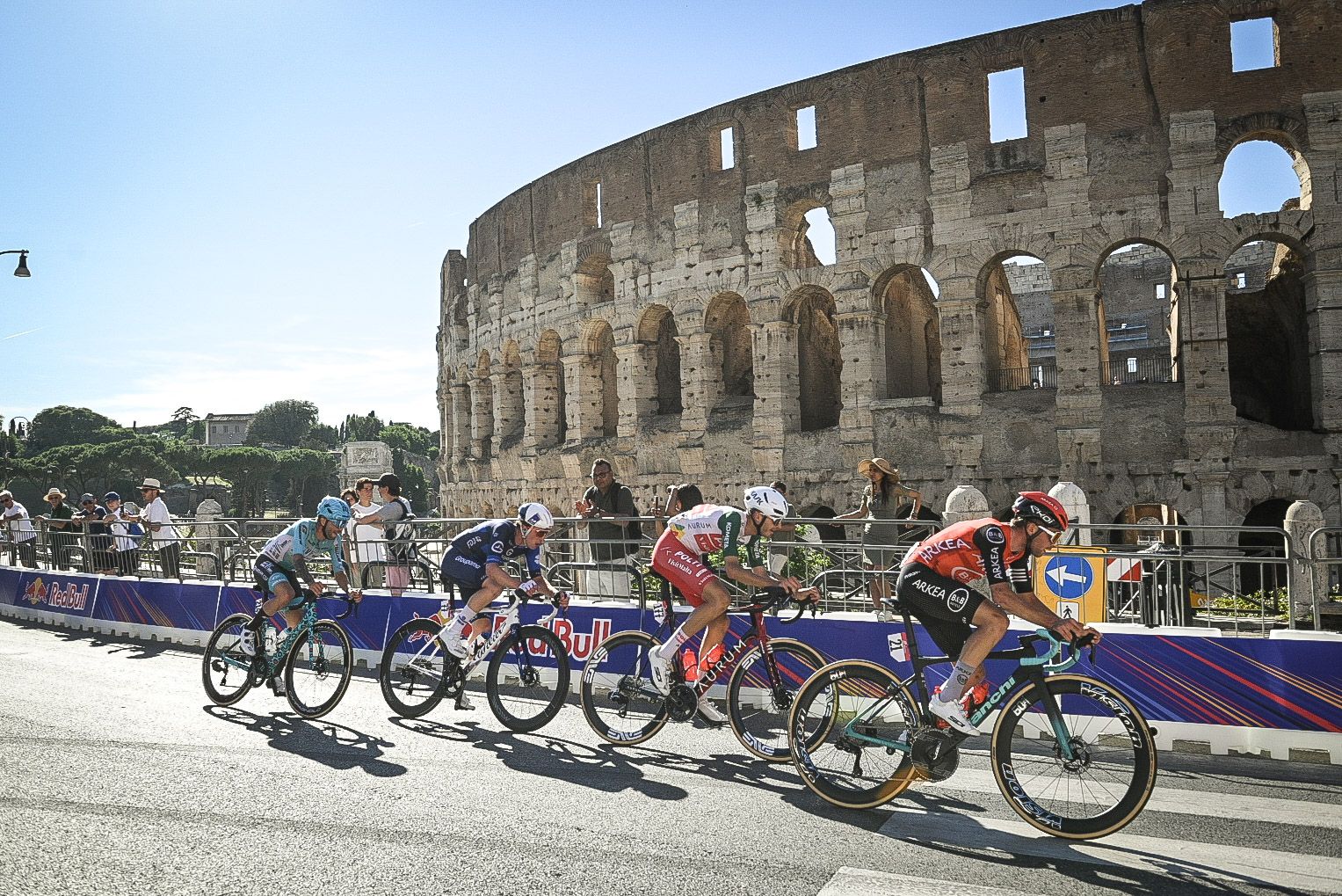 Il ne restait plus que 143 kilomètres à couvrir ce dimanche pour boucler le 108ème Giro de l’histoire. Depuis Rome, un petit itinéraire en ligne vers la côte était au programme des coureurs avant de revenir dans la cité éternelle pour enchaîner les tours de circuit. Après un premier arrêt Place Saint-Pierre, au Vatican, le peloton a vécu un début de journée très calme, puis les hostilités ont émergé à l’arrivée dans le premier des huit tours de circuit, à un peu plus de 80 bornes du terme. Après quelques minutes de bagarre, six hommes ont réussi à se faire la malle, dont Enzo Paleni. « C’était le dernier jour, donc il fallait vider la machine », souriait l’intéressé. « L’objectif était de se faire plaisir dans ce lieu magique, ajoutait Stéphane Goubert. Pour autant, il fallait être en capacité de le faire car ça roulait à plus de 50 km/h sur le circuit. Enzo est sorti avec un joli groupe, de par son nombre et sa composition. L’écart est monté jusqu’à trente secondes, et il y avait de quoi jouer avec des garçons comme Josef Cerny à l’avant ». Le peloton s’est toutefois montré très prudent, et a immédiatement mené la chasse derrière les six hommes.