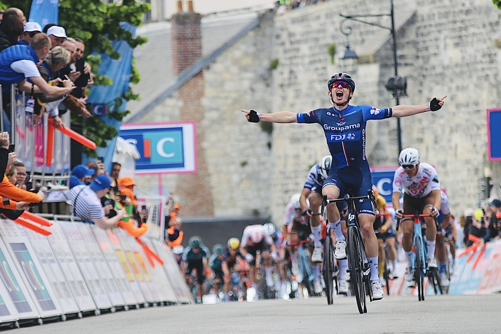 Six fois vainqueur l’an passé dans les rangs Espoirs, Romain Grégoire tient désormais sa première gagne « chez les grands », après déjà six top-10 cette saison dont une huitième place sur les Strade Bianche. Il apporte aussi le quatrième succès de la saison à la Groupama-FDJ, quatre jours après la troisième ramenée par son ancien compère de « La Conti », Paul Penhoët. « Auparavant, le mois de mai était parfois un peu creux, mais ces deux victoires en une semaine font du bien, complétait Frédéric. Ça permet d’installer une dynamique. Ce pourrait être une surprise que les jeunes gagnent dès leur première année, mais ça ne l’est pas. Ils sont opérationnels dès leur arrivée chez nous grâce au beau travail réalisé par la Conti. C’est une bonne chose que ça paie rapidement ». Romain Grégoire est également troisième du classement général ce mercredi soir, à une seconde du leader Samuel Leroux. Paul Penhoët est sixième à sept secondes. « Il y aura encore de belles choses à faire à Cassel samedi, mais avant cela, il y a un chrono demain, ajoutait Romain. Je vais devoir me concentrer sur cela d’abord. Je n’ai pas encore de référence chez les pros, on verra ce que ça peut donner ». « On espère que le chrono se passe bien et qu’on se maintienne dans les billes pour le général », ponctuait enfin Frédéric Guesdon.