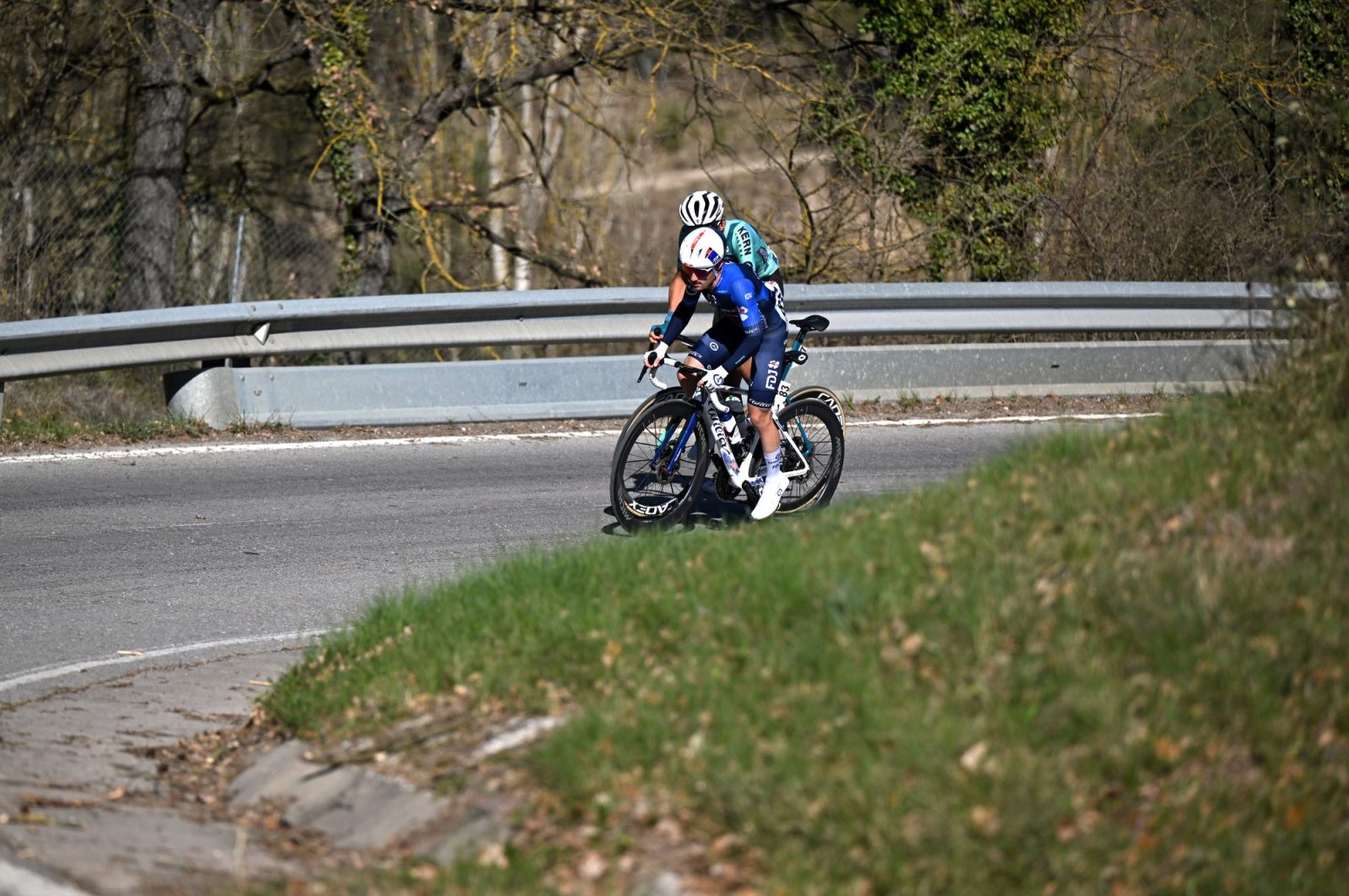 Le temps pour l’information d’être donnée et de circuler, le « départ » a donc été donné à … vingt-six kilomètres du terme, à savoir Berga. Rémy Rochas a fait partie d’une première tentative d’échappée, mais le peloton ne s’est naturellement jamais relevé, et c’est finalement la descente vers la ville d’arrivée qui a provoqué quelques cassures. « C’étaient trente minutes à bloc, disait Stéphane. La mise en route peut parfois être difficile, mais les gars se sont bien laissé porter par le mouvement. On avait essayé d’établir un petit plan, même si ce n’est jamais évident sur un tel format. Tom avait de belles qualités pour cette arrivée, au même titre que nos trois grimpeurs-puncheurs, Clément, Rémy et Brieuc. Assez tôt, Tom nous a dit qu’il n’était pas très bien, puis les gars ont essayé de se retrouver mais ce n’était pas simple ». Le peloton est arrivé morcelé au pied de l’arrivée « en côte », et Quinn Simmons a profité de sa présence dans un petit groupe détaché pour anticiper et s’offrir la victoire.