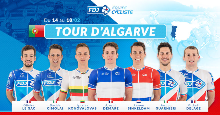 Ici, Marc Sarreau est remplacé par Ramon Sinkeldam et ça tombe bien parce que nous voulions lui laisser sa chance dans certaines courses. Sinon, Mika Delage est le capitaine. Il est le précurseur du travail de Ramon Sinkeldam, Jacopo Guarnieri et Arnaud Demare. Auparavant, Olivier Le Gac et Ignatas Konovalovas auront roulé en cas de besoin mais pourront se situer devant Mickaël Delage. Si Kono roule, Olivier peut prendre sa place dans le train. Ils sont interchangeables et peuvent se permettre de faire une erreur. Davide Cimolaï se rajoute dans certaines courses comme dans le Tour d’Algarve.