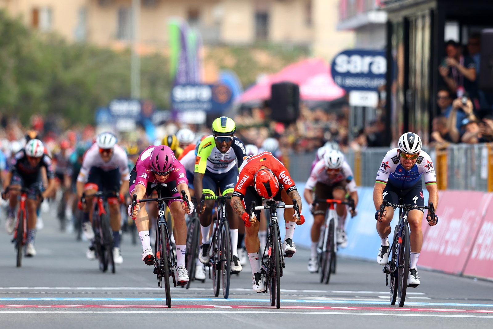 La page du début de saison délicat est donc tournée pour de bon. « On n’était pas à notre niveau, mais tout le monde est aussi tombé malade à un moment donné, rappelait Arnaud. Ça nous a bien pénalisés, même s’il ne faut pas se cacher seulement derrière ça. On n’était pas là où on voulait être. On a tous bien travaillé dans le mois précédant le Giro et les voyants étaient au vert pour tout le monde. On sent que tout le monde va bien physiquement. L’équipe et le staff se sont aussi remis en question pour être encore meilleurs ». Sébastien Joly, qui a d’abord reçu une information donnant Caleb Ewan vainqueur, a finalement explosé de joie dans la voiture suiveuse et livrait plus tard ses louanges. « Je dirais que c’était la partition parfaite, lançait-il. J’avais dit à Ramon qu’au vu de ce qu’il avait produit hier, il était capable de le refaire avec le train au complet. J’étais très content de revoir Kono à sa place également. C’est un élément charnière, mais chacun a en réalité assumé son poste parfaitement ». « C’est une belle expérience, se délectait Clément Davy, actuellement sur son premier Grand Tour. Il ne faut pas s’y habituer, car on peut aussi passer des moments plus difficiles, mais ça donne encore plus envie d’y retourner ! » Le prochain sprint massif pourrait n’intervenir que la semaine prochaine. En attendant, Arnaud Démare a non seulement augmenté à 56 points son avantage au maillot cyclamen, mais il est aussi devenu le coureur français le plus prolifique sur le Giro avec sept bouquets. « C’est énorme, concluait-il dans un grand sourire. Quant au maillot cyclamen, il ne faut pas s’emballer. Je sais que ce n’est pas acquis. Je prends ce qui est à prendre pour le moment, et je me contente pour l’heure de cette superbe victoire collective. Je sais qu’un Grand Tour, c’est long. On n’est qu’en première semaine. Il faut rester humble ».