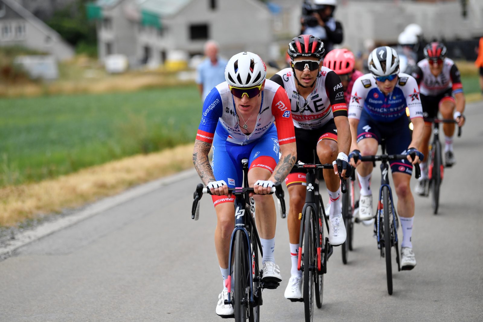 « Comme on avait envisagé de faire l’arrivée avec Jake, on a fait rouler Anthony, relatait Sébastien. Il est en reprise, et ça lui fait du bien de mettre de bouts droits devant le peloton. Ça lui permet de se rassurer et il marchait d’ailleurs déjà très bien. Il a vraiment fait un gros boulot, donc coup de chapeau à lui. Ça nous a aussi permis d’être bien focalisés sur la course. On a pris nos responsabilités, ce qui est important pour la confiance. Le reste de l’équipe a été beaucoup plus collectif aujourd’hui, et c’est ce qu’on voulait ». Grâce au travail de l’ancien champion de France et d’une poignée d’autres coureurs, l’écart s’est donc réduit au fil des kilomètres. Le Lorrain s’est finalement écarté à une quinzaine de kilomètres lorsque le peloton a passé la surmultiplié en approche de la dernière difficulté du jour. Les fuyards l’ont entamé avec une petite minute d’avance et les favoris du classement général y ont bataillé dès les premières pentes. Bien positionné au pied, Jake Stewart a cédé un peu de terrain au plus dur de l’ascension mais s’est bien accroché en deuxième rideau. Il a ainsi pu établir la jonction avec le groupe des favoris à environ cinq kilomètres du but, au moment de redescendre vers la ligne d’arrivée. Toutefois, trois rescapés de l’échappée ainsi qu’un autre homme ont pu résister de justesse à ce qu’il restait du paquet, et Davide Ballerini s’est alors imposé.