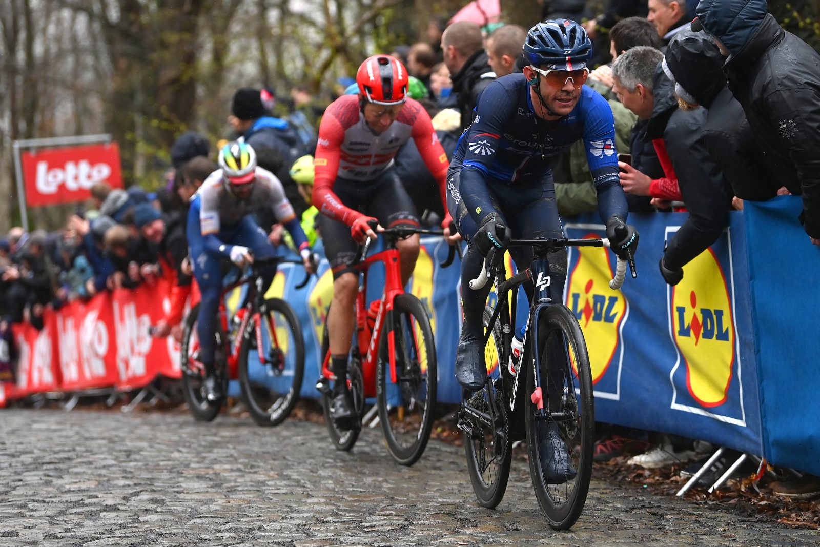 La troisième Classique flandrienne de la semaine n’a pas souri à l’Équipe cycliste Groupama-FDJ ce dimanche. Dans une édition 2023 de Gand-Wevelgem rendue extrêmement éprouvante du fait des conditions météorologiques, Stefan Küng et ses compères n’ont cette fois pu occuper les premiers rôles. En raison notamment d’un incident au pied de la seconde montée du Kemmelberg, le coureur Suisse a été écarté de la bagarre finale. Christophe Laporte a finalement remporté l’épreuve devant son coéquipier Wout Van Aert.