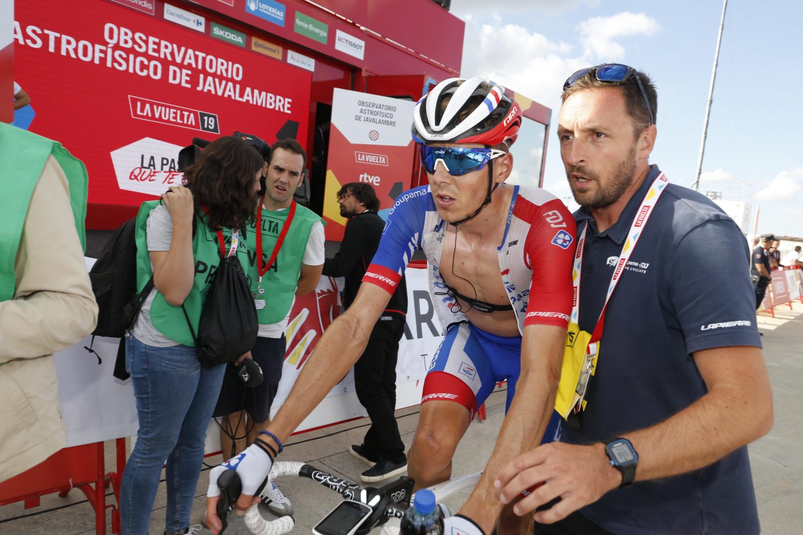 « Vraiment, dit Thierry Bricaud, le peloton a laissé beaucoup de champ à l’échappée et il y eut de la bagarre seulement dans le final. En cours d’étape Kilian Frankiny a été concerné par une chute et s’est fait rentrer dedans mais il n’a pas eu mal. En revanche, notre grimpeur suisse n’avait pas de bonnes jambes. Dans ces conditions, c’était difficile pour nous d’exister. »
