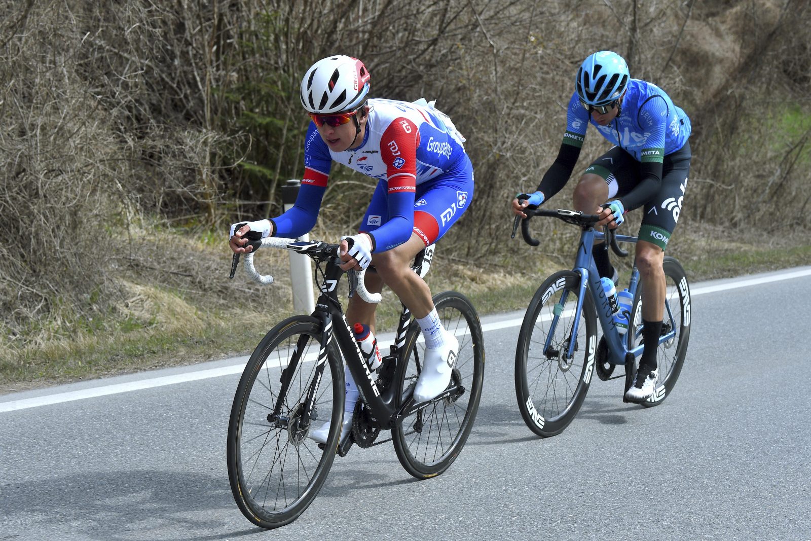 Comme lors de l’étape d’ouverture, l’Équipe cycliste Groupama-FDJ avait bien l’intention d’être active ce mardi matin, au départ du second acte du Tour des Alpes. Et comme la veille, c’est le jeune Reuben Thompson, pensionnaire de la Conti depuis le début d’année, qui s’est mêlé aux premières offensives, parvenant finalement à prendre le bon coup après quelques minutes de course. « J’avais déjà essayé de prendre l’échappée hier, mais je m’y étais mal pris, expliquait le Néo-Zélandais de 20 ans. Je voulais retenter aujourd’hui et les mecs de l’équipe m’ont donné des conseils pour y arriver. Ils m’ont dit d’être plus patient, d’identifier les coureurs qui voulaient s’échapper et de suivre leurs attaques. Ça a bien mieux fonctionné ! » Le « Kiwi » s’est alors retrouvé en compagnie de Reinardt Janse van Rensburg (Qhubeka-Assos), Mathias Vacek (Gazprom-RusVelo), Davide Bais (Eolo-Kometa), Morten Hulgaard (UnoX) et Felix Engelhardt (Tirol KTM) mais le peloton ne leur a accordé qu’un avantage maximal de trois minutes. « On a bien travaillé ensemble dans la première partie, ajoutait Reuben. Puis, mon objectif était de prendre les points au sommet de la première montée répertoriée, ce que j’ai été en mesure de faire. C’était une bonne chose ». Après avoir accéléré dans les derniers hectomètres de l’ascension, il a ainsi grappillé six points pour le classement de la montagne et s’est même un instant retrouvé seul en tête. Davide Bais l’a ensuite rejoint à l’entame de la descente et les deux hommes ont collaboré jusqu’à la deuxième montée de Pillerhöhe, par un versant plus difficile (6,5 à 9,4%).