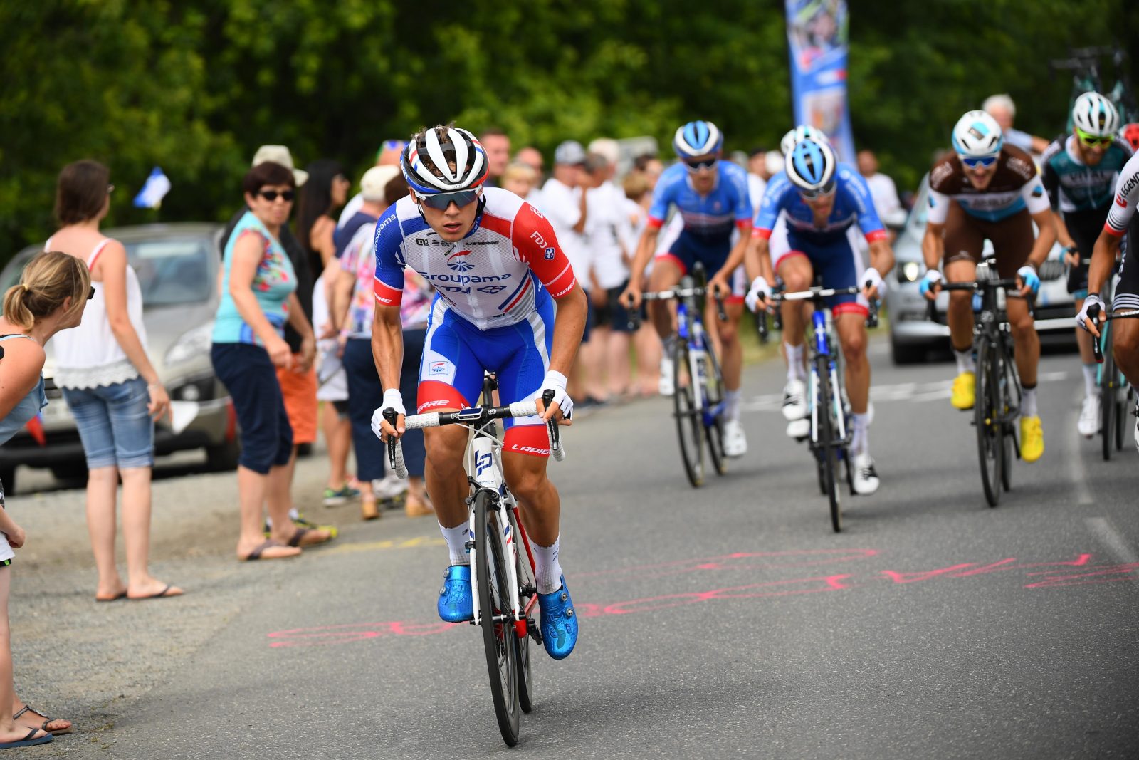 « Vraiment, ce n’est pas de chance, explique Frédéric Guesdon. Ça a commencé avec une crevaison de Stefan Küng au pied de la première des trois ascensions de Saint-Roch. Il a été immédiatement dépanné par Ramon Sinkeldam qui s’est ensuite retrouvé dans le gruppetto. Puis Valentin a crevé des deux roues après un tour et demi en pleine bagarre et il n’a pas pu rentrer. Le gruppetto a récupéré Valentin et nos gars ont roulé fort pour essayer de le replacer dans le peloton mais dans cette étape très courte, ça roulait vraiment très vite et cela s’est avéré impossible. Il a de quoi être frustré ! »