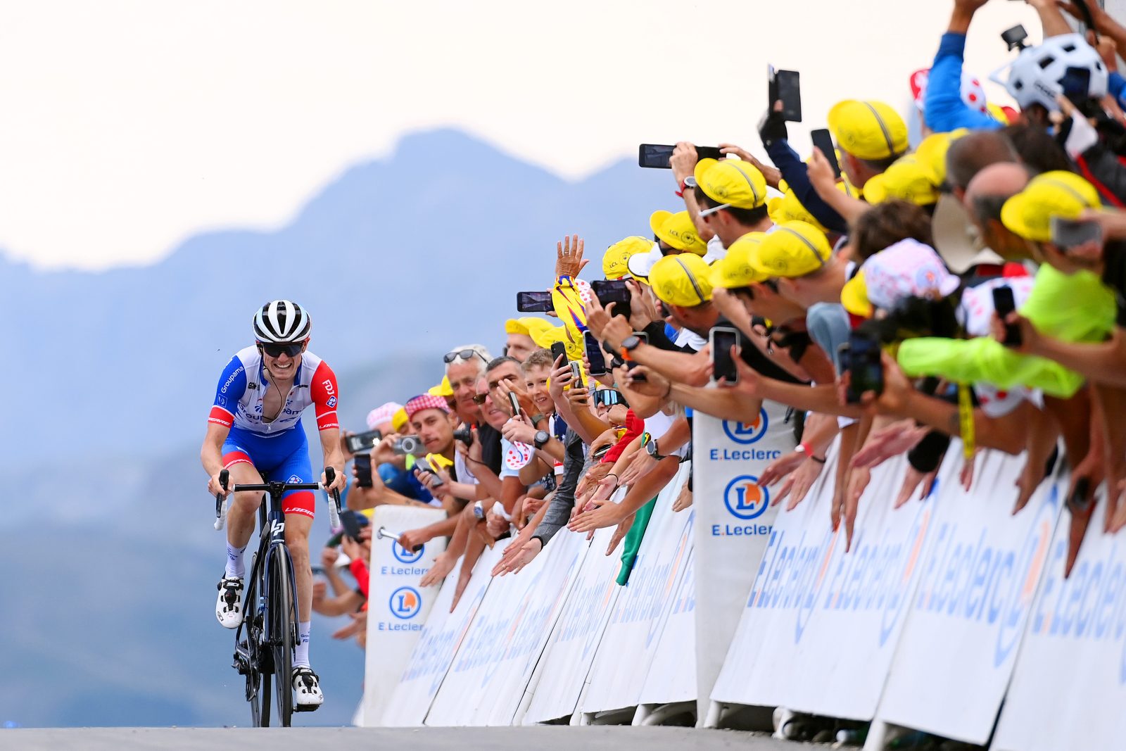 David Gaudu est d’abord allé cueillir Alexey Lutsenko, Aleksandr Vlasov, puis a même rejoint le maillot jaune Tadej Pogacar, en difficulté, à deux bornes du sommet. Il l’a immédiatement décroché, tout comme il a distancé Adam Yates, avant d’aller finalement franchir la ligne en cinquième position au sommet, deux minutes derrière le vainqueur et nouveau leader Vingegaard. « On a vraiment bien géré, se félicitait David. Au final, je me sentais plutôt bien dans la dernière ascension et j’ai repris tous ceux que je pouvais reprendre. Je suis content de ma journée ». S’il a perdu un rang au classement général, dont il occupe désormais la septième place, David Gaudu s’est paradoxalement rapproché du podium. Six coureurs se tiennent ainsi en une minute derrière le nouveau maillot jaune, mais l’arrivée à l’Alpe d’Huez jeudi devrait permettre d’y voir encore un peu plus clair. « J’ai vraiment hâte d’être à demain, concluait David. C’est le 14 juillet, notre fête nationale, sur une arrivée mythique, celle qui m’a marqué gosse quand je regardais le Tour. En plus, Thibaut y a déjà gagné. C’est une étape très spéciale ».