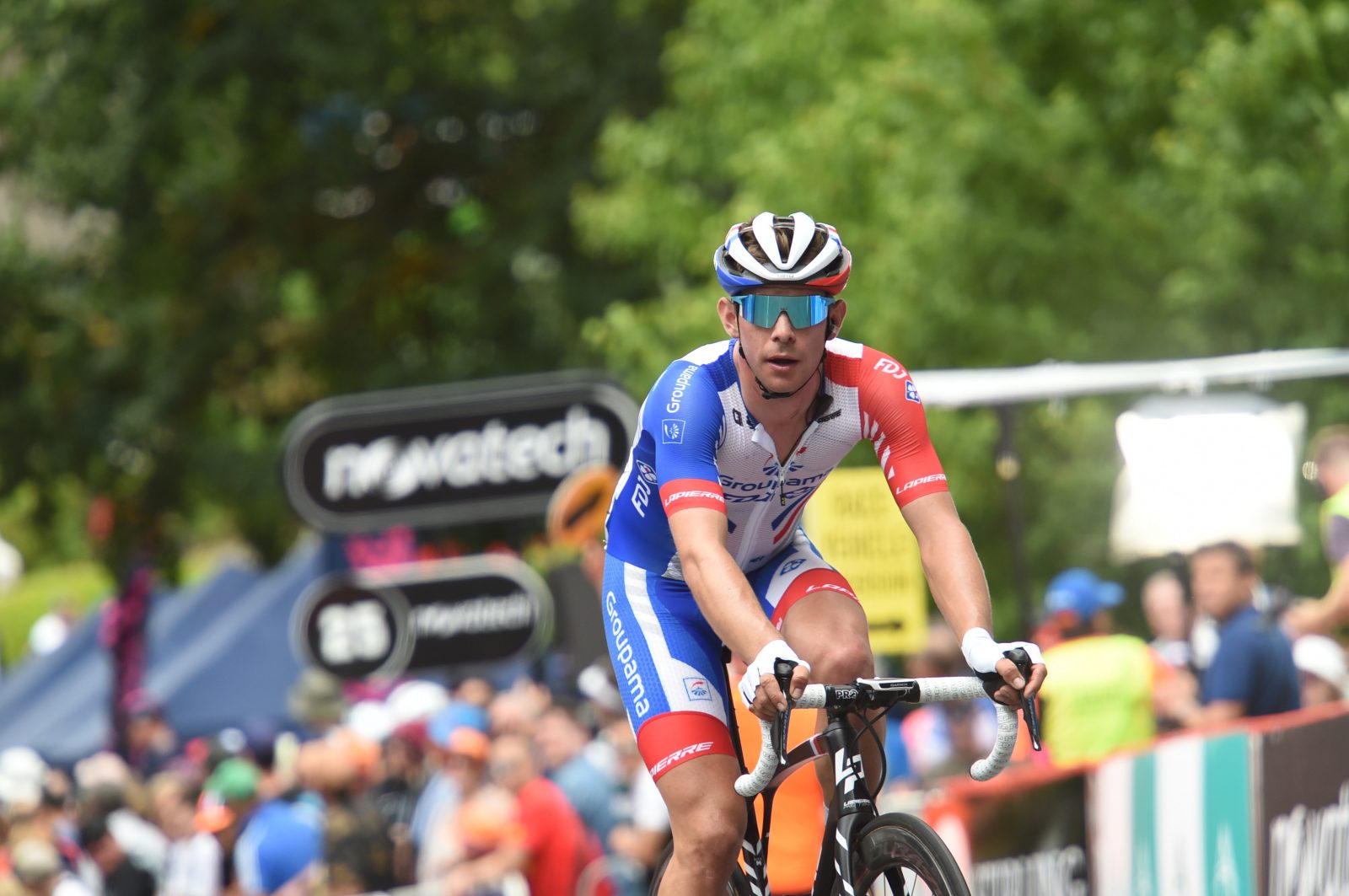 Au départ de Pont-Audemer ce mardi matin, il n’a pas fallu patienter bien longtemps pour voir une échappée de trois hommes prendre son envol. Agités, à l’inverse du peloton, Janos Pelikan (Androni Giocattoli-Sidermec), Quentin Venner (Bingoal-Wallonie Bruxelles) et Nickolas Zukowsky (Rally Cycling) ont ainsi pu rapidement se forger une avance de 3 à 4 minutes. « Derrière, Arkéa-Samsic roulait pour Bouhanni et endormait un peu tout le monde, détaillait Franck Pineau. Ils ne voulaient pas rouler trop fort, au risque de rentrer trop tôt et de s’exposer à des contres ». La Groupama-FDJ a alors patiemment attendu son heure et s’est mise en ordre marche à l’entame du dernier quart de course. « Dans un premier temps, on a eu un peu de malchance car on comptait faire la course sur Anthony, mais il a rapidement eu des maux de ventre, reprenait Franck. Il a dû abandonner, ça nous a un peu plombé mais on a vite switché et nous n’avons pas baissé les bras. On ne s’est pas désunis, et on a contraire pris la course à notre compte. À 50 kilomètres de l’arrivée, on a décidé de durcir et de préparer l’attaque de Jake [Stewart]. J’ai d’abord fait rouler Clément [Davy] et Fabian [Lienhard] pour écrémer le peloton, puis nous sommes arrivés sur un taquet. On avait bien prévu notre affaire et Jake a attaqué. Il a été suivi par trois autres coureurs et ces quatre là rentrent sur l’échappée ».