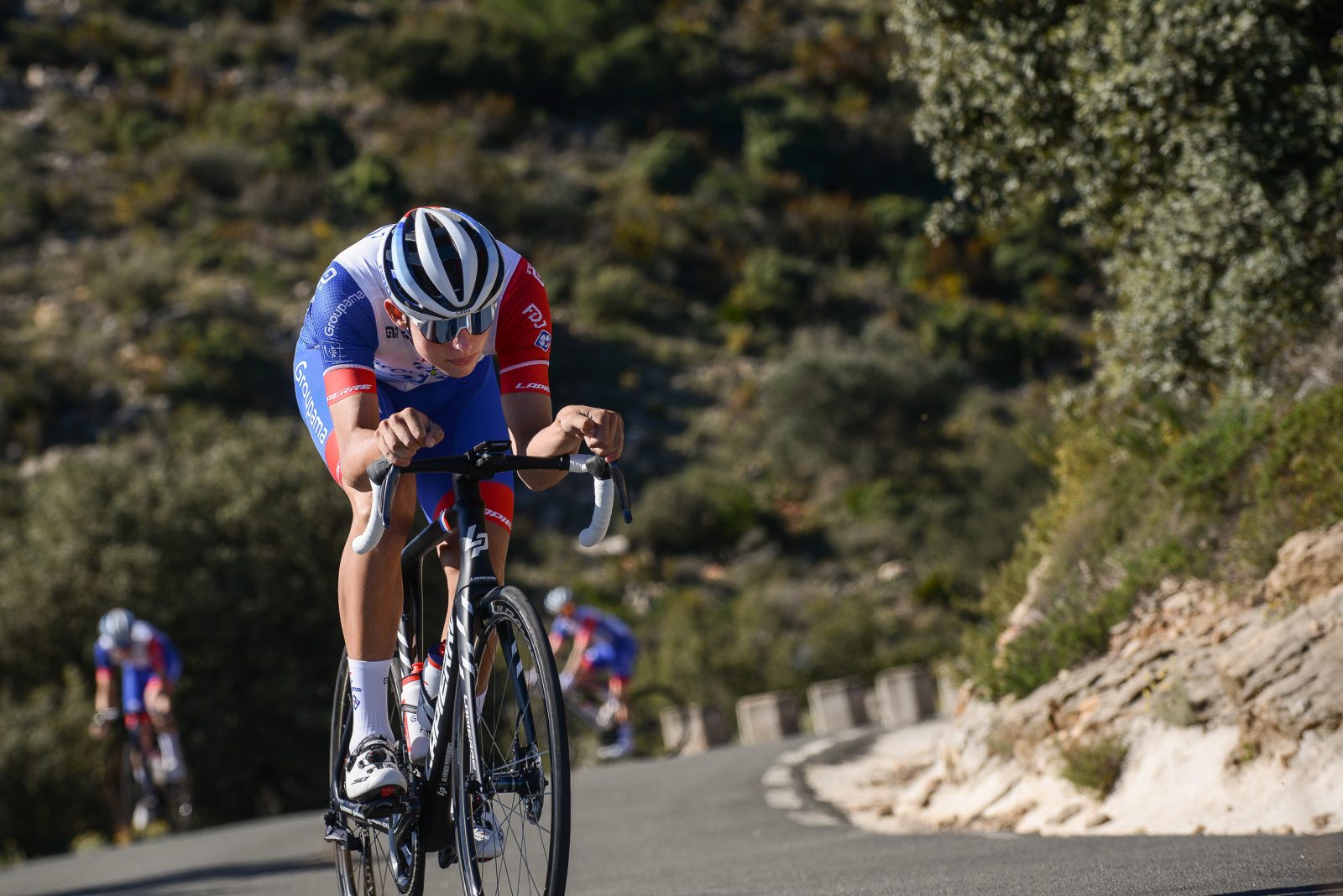 En ce 6 juin, date anniversaire du Débarquement, les coureurs de Paris-Troyes avaient rendez-vous de manière assez symbolique à Colombey-les-Deux-Églises, commune marquée de l’empreinte du Général de Gaulle. C’est donc avec une petite pensée pour l’Histoire que le peloton s’est élancé lundi pour 180 kilomètres en direction de Troyes, avec une série de bosses à franchir dans la première moitié de course. Cela a d’ailleurs donné lieu à deux premières heures très intensives. « On avait pour objectif de jouer le sprint avec Paul Penhoët, mais on voulait aussi mettre quelqu’un dans l’échappée pour ne pas avoir à assumer toutes les responsabilités derrière, expliquait Jens Blatter. Au début, on a réussi à mettre Enzo dans une petite échappée de moins de dix coureurs, mais ça ne nous arrangeait pas car une équipe y avait trois hommes. On a donc roulé derrière pour relancer, et ramener quelques coureurs devant. Au final, une échappée de vingt-neuf s’est constituée avec quatre coureurs de chez nous ». Après un peu plus de quatre-vingts kilomètres, Enzo Paleni, Finlay Pickering, Laurence Pithie mais aussi Clément Davy ont donc pris place dans un groupe de tête qui a très vite fait le break avec le reste du peloton. « Le seul point dommageable est que Paul n’était pas devant, mais ce n’est pas faute d’avoir essayé, expliquait Jens. Il a tenté plusieurs fois, mais désormais, tout le monde le connaît et personne ne voulait le laisser partir. Sur les vingt-neuf, on en avait donc quatre mais l’équipe WiV-SunGod était elle à cinq, et avec son sprinteur ».