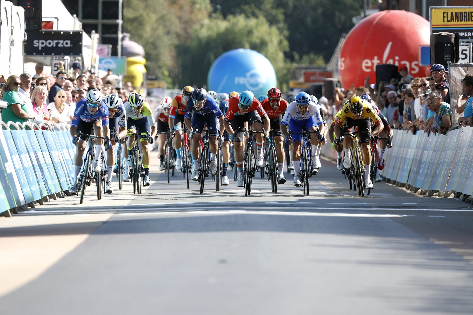 Après une année d’interruption, le Tour du Benelux reprenait vie à compter de ce mercredi, sous l’appellation de Renewi Tour. En guise d’ouverture, une étape 100% belge reliant Blankenberge à Ardooie à travers 183 kilomètres était au menu, sans une once de difficulté en cours de route. « C’était une étape relativement simple, plate, avec peu de vent », précisait Sébastien Joly. Vingt kilomètres ont en revanche été nécessaires pour voir l’échappée du jour se développer autour de cinq hommes : Ludovic Robeet et Ceriel Desal (Bingoal WB), Alessandro Covi (UAE Emirates), Jonas Rutsch (EF Education-EasyPost) et Aaron Van Poucke (Team Flanders-Baloise). Les fuyards du jour ont pu compter jusqu’à trois minutes d’avance, mais la pléiade de sprinteurs au départ a rapidement éteint tout espoir. L’écart a ainsi navigué autour d’une minute trente pendant une large partie de la journée et les nombreuses équipes intéressées par l’étape du jour se sont chargées de boucher les dernières secondes dans l’ultime heure de course. Après quatre premiers tours de quinze kilomètres autour d’Ardooie, l’échappée a ainsi été revue avant l’ultime boucle locale et l’emballage s’est petit à petit mis en place. « On est d’abord restés concentrés autour de nos coureurs protégés en vue du classement général, et pour ce qui est de l’étape, on jouait sur Laurence aujourd’hui », indiquait Sébastien Joly.