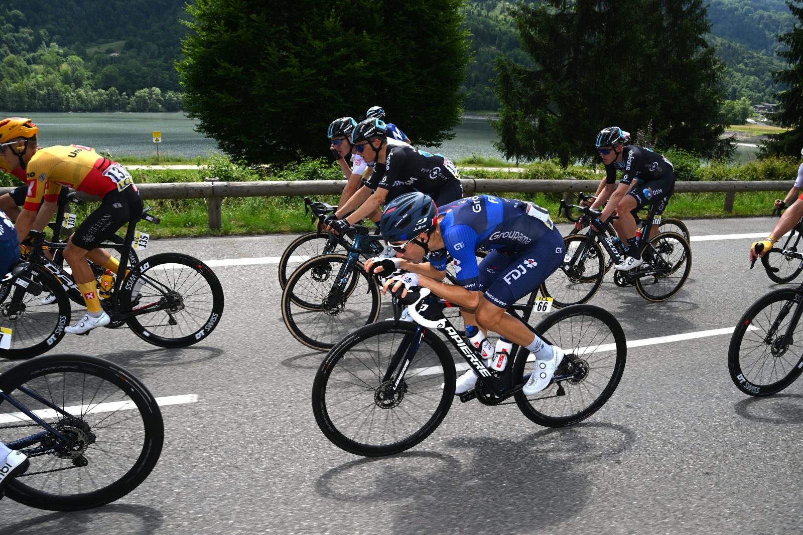 Comme attendu, l’ultime journée du Critérium du Dauphiné vers La Bastille, sur les hauteurs de Grenoble, a engendré d’importants dégâts ce dimanche. Au terme d’un parcours cumulant plus de 4000 mètres de dénivelé positif, Giulio Ciccone s’est imposé et Jonas Vingegaard a sécurisé son maillot jaune. Meilleur représentant de l’Équipe cycliste Groupama-FDJ au départ de cette huitième étape, Lenny Martinez a été contraint de laisser filer les favoris dans le Col de Porte, mais bien aidé par Kevin Geniets, a réussi à limiter la casse pour assurer sa place dans le top-20 du classement général. Le jeune grimpeur termine ainsi 18e d’un Critérium du Dauphiné néanmoins mitigé pour l’équipe au global.