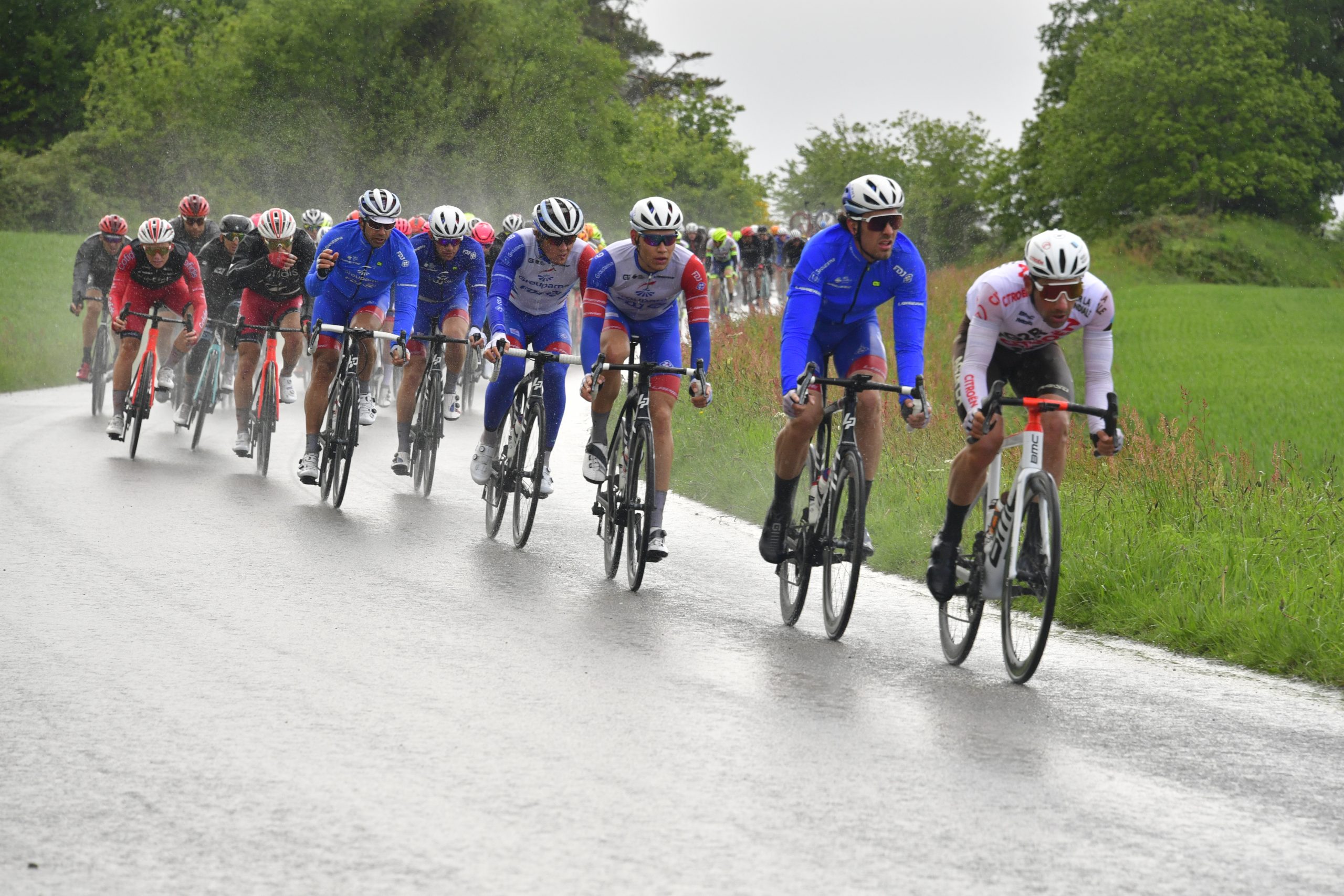 L’échappée n’a pas tardé à voir le jour ce samedi, peu après 11 heures au départ de Saint-Evarzec. Cinq minutes ont suffi à cinq hommes pour s’extirper et passer la journée en tête. Louis Louvet (St-Michel-Auber 93), Samuel Leroux (Xelliss-Roubaix Lille Métropole), Gianni Marchand (Tarteletto-Isorex), Gil Gelders (Bingoal-WB) et Matteo Dal-Cin (Rally Cycling) ont donc ouvert la route pendant de très longs kilomètres tandis que l’Équipe cycliste Groupama-FDJ restait bien placée en tête de peloton, sans pour autant prendre les choses en main. « Ce n’était pas à nous d’assumer le poids de la course, nous n’avions pas le grand favori, exposait Marc Madiot, pour l’occasion à la tête du groupe. On était outsiders aujourd’hui ». Partant de ce constat, l’équipe a alors tenté d’animer la course lorsque l’écart avec le quintette échappé est passé sous les trois minutes. « À 60 kilomètres de l’arrivée, j’ai demandé à mes coureurs d’attaquer, reprenait Marc. Clément [Davy] puis Alexys [Brunel], qui a connu un petit souci d’aiguillage, ont tenté leur chance ». En raison d’une erreur de parcours induit par une moto, la tentative du Nordiste est donc mort-née et le peloton a dès lors quelque peu temporisé.