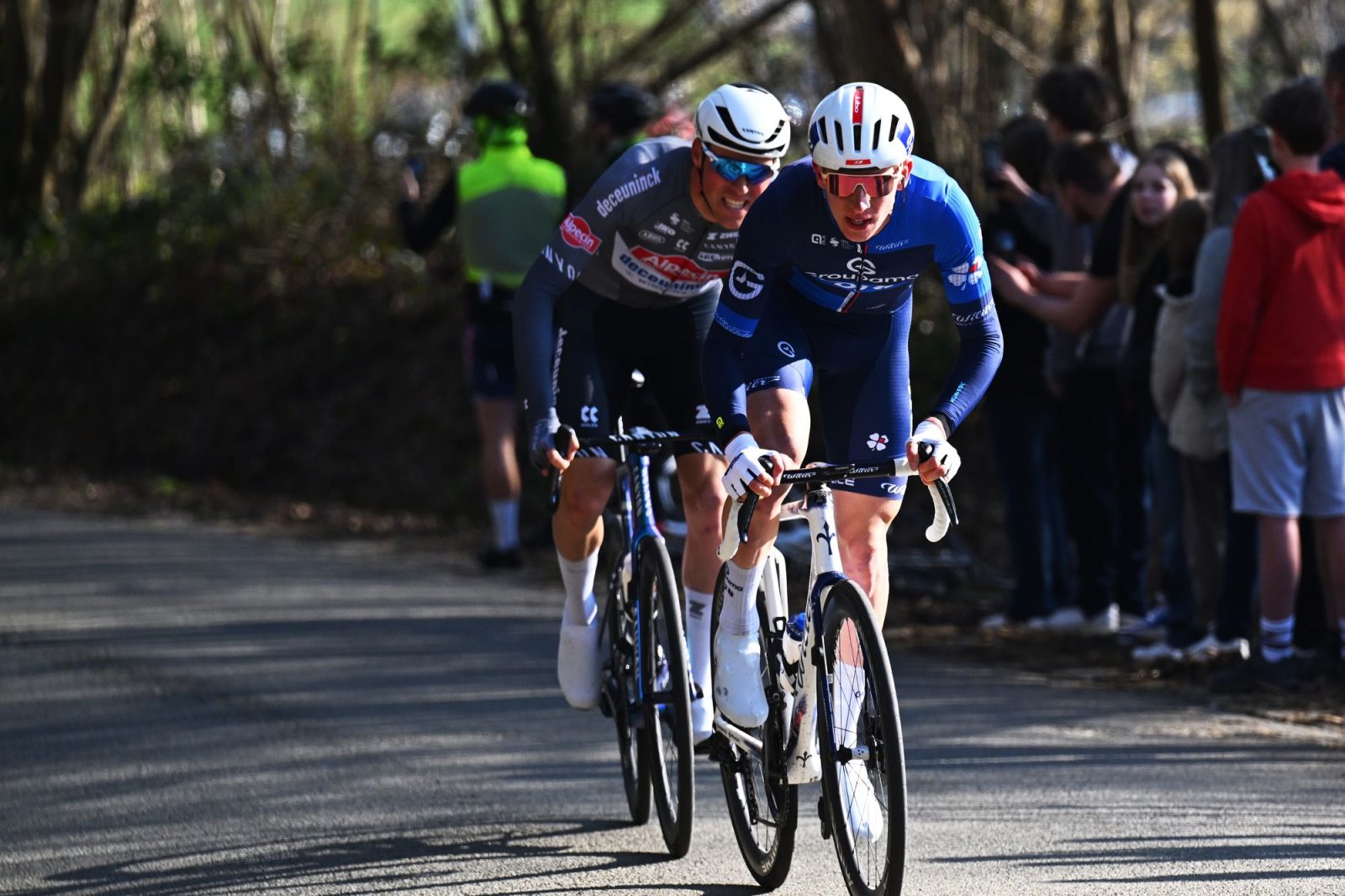 Deuxième acte du « week-end d’ouverture », Kuurne-Bruxelles-Kuurne laissait, cette année encore, augurer une belle lutte entre les sprinteurs et les attaquants. Samedi soir, par la voix de son directeur sportif Frédéric Guesdon, l’Équipe cycliste Groupama-FDJ se disait prête pour les deux scénarios. Malheureusement, la donne a drastiquement changé après environ soixante-dix kilomètres de course ce dimanche. Tandis qu’une échappée ouvrait tranquillement la route devant le peloton, Paul Penhoët était ainsi victime d’une chute. « La course n’était même pas lancée, confiait Frédéric. Il s’est retrouvé très loin, il a pu revenir, on pensait que ça allait, mais il nous a averti assez tôt que ça ne serait pas faisable. Quelques monts plus tard, Marc [Madiot] l’a récupéré. On s’est retrouvé privé de notre sprinteur, et sans sprinteur à Kuurne, ça devient compliqué ». C’est aussi pourquoi, à près de cent kilomètres de l’arrivée, Lewis Askey a lancé les hostilités dans le peloton. « La meilleure solution de figurer pour nous était dès lors l’attaque, disait Frédéric Guesdon. Lewis avait de bonnes jambes, il a tenté ».