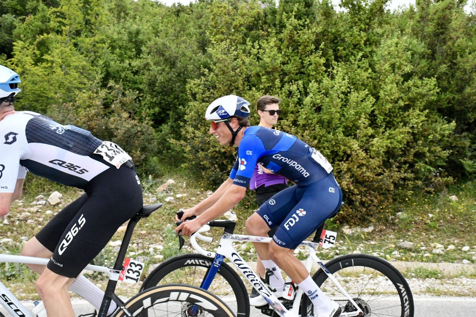 En tête, le représentant de la Groupama-FDJ et ses compères n’ont ainsi bénéficié que de trois minutes au maximum. Et alors que les sprinteurs se faisaient distancer dans le peloton à l’occasion de quelques bosses plutôt abruptes, l’écart de l’échappée était ramené à tout juste une minute avant le grand col de la journée. Lorenzo Germani a tenu sa place à l’avant jusqu’à la mi-ascension, puis a été revu par le peloton à quelques hectomètres du sommet. « C’est dommage que le scénario n’ait pas été à notre avantage, mais il a malgré tout fait une très belle étape et ça lance la dynamique qu’on a souhaité mettre en place, complétait Stéphane. C’est ce qu’il faut retenir ». Pello Bilbao et Lorenzo Fortunato ont pour leur part pris un avantage sur le peloton avant la descente, mais leur entreprise s’est achevée peu après l’entrée dans les vingt derniers kilomètres. Un peloton de quatre-vingt-dix unités comprenant David Gaudu, Lorenzo Germani, Rémy Rochas, et Kevin Geniets s’est donc dirigé vers un sprint, remporté par Mads Pedersen.Le Danois a repris le maillot rose tandis que David Gaudu a gagné un rang au classement général (24e). « Le bilan de ces trois premiers jours en Albanie est bon, concluait Stéphane. David monte en pression petit à petit et il est dans le match. On a également évité les chutes, ce que tout le monde craignait un peu. On se projette désormais vers la quatrième étape qui sera propice aux sprinteurs, mais il y aura d’abord une journée de repos particulière demain. Cela commencera par un long transfert, en bus, puis en avion, et les coureurs iront faire un petit tour à leur arrivée en Italie. Ça va passer très vite ».