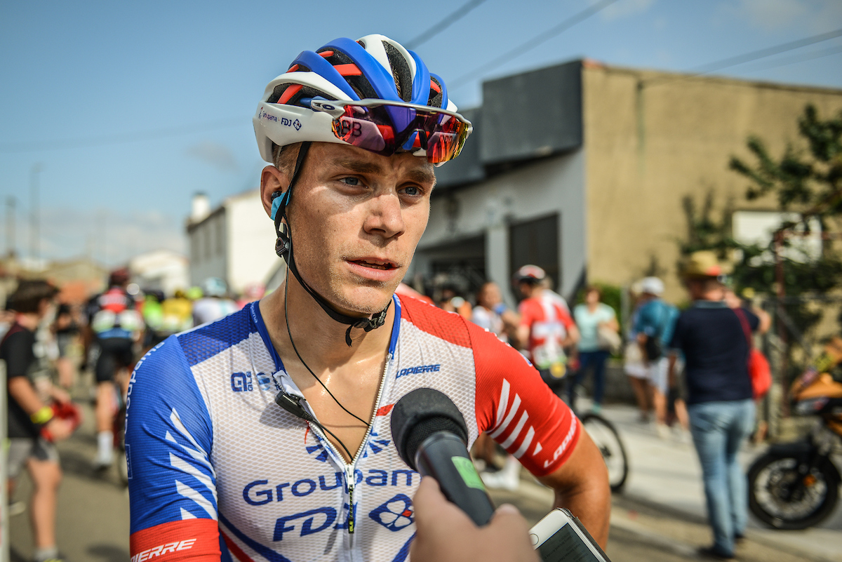 « Toute la journée, poursuit le directeur sportif de Groupama-FDJ, Thibaut Pinot a été bien soutenu par Rudy Molard, Georg Preidler et Léo Vincent. Pour sa part, Marc Sarreau a profité du travail d’Antoine Duchesne, Mickaël Delage et Benjamin Thomas qui fait face à un petit problème de santé depuis deux jours. Même si Mika a dit n’avoir pas de super jambes, il a déposé Marc dans la roue de Viviani à 800 mètres de la ligne d’arrivée. Notre sprinteur prend la cinquième étape et nous sommes tous contents pour lui. Pour tout le travail fourni par lui ces derniers jour. Marc n’a pas compté ses coups de pédale. Sans jamais rechigner. Lui aussi est content mais ne veut pas s’en satisfaire… Il est encore jeune, c’est de bon augure. »