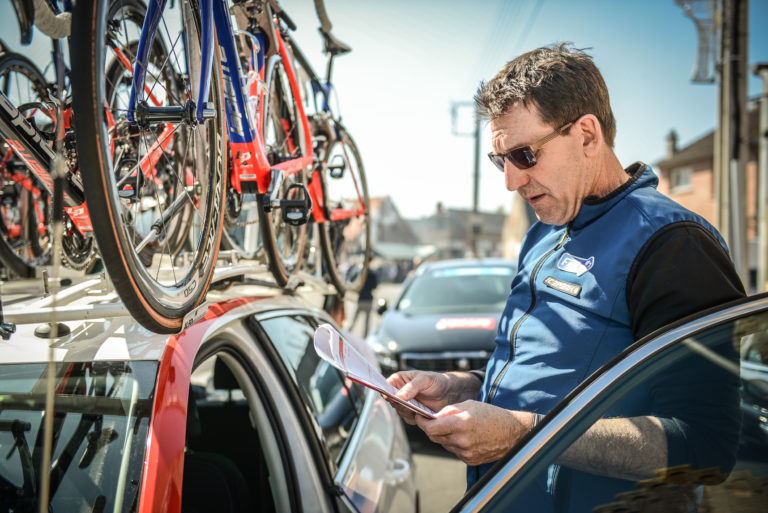 Il y a un camion cuisine pour des repas de communion, un camion atelier, le bus conduit par Thierry Picard, un crafter pour les valises et préparer les hôtels, une caravelle pour suppléer le bus quand il ne peut pas monter au sommet d’un col, trois voitures. Ça représente 4 mécanos, 6 kinés, deux directeurs sportifs, le médecin, l’attaché de presse, l’entraîneur Julien Pinot. En tout 25 personnes en plus de Marc Madiot qui nous a rejoint. Enfin, puisque que nous sommes à l’heure des réseaux sociaux, une équipe de tournage pour vous faire vivre cette aventure de l’intérieur.