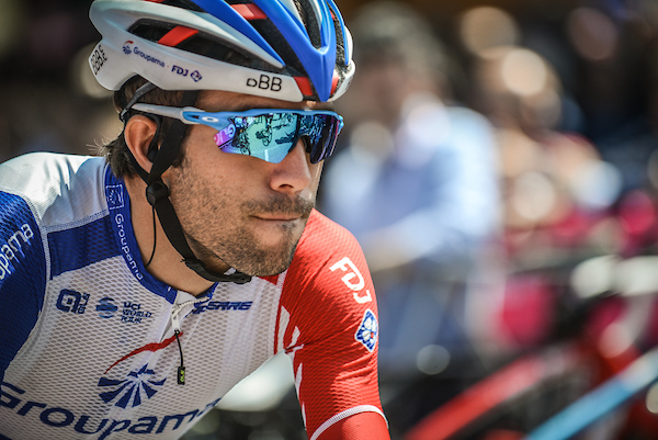 Sur le circuit de 65 kilomètres à couvrir deux fois, il y avait de grosses ascensions bien pentues sur de petites routes un peu dangereuses, même un chemin empierré d’un kilomètre assez stressant. La pluie est arrivée, des orages par endroits, c’était du stress. Dans ces conditions compliquées, les coureurs de l’équipe Groupama-FDJ ont été top, ils sont restés longtemps avec Thibaut Pinot. Notre leader a été épaté par le très gros travail d’Antoine Duchesne qui a fait du William Bonnet après William Bonnet. Sur un tracé ne lui convenant pas, même Marc Sarreau a bien travaillé. Il est vraiment en bonne condition. Enfin il faut décerner la palme d’or à Georg Preidler. Toute la semaine, il a fait tandem avec Thibaut après avoir bossé pour les sprinteurs dans les trois premières étapes. En dépit de tout ça, il va faire sixième du classement général, chapeau !