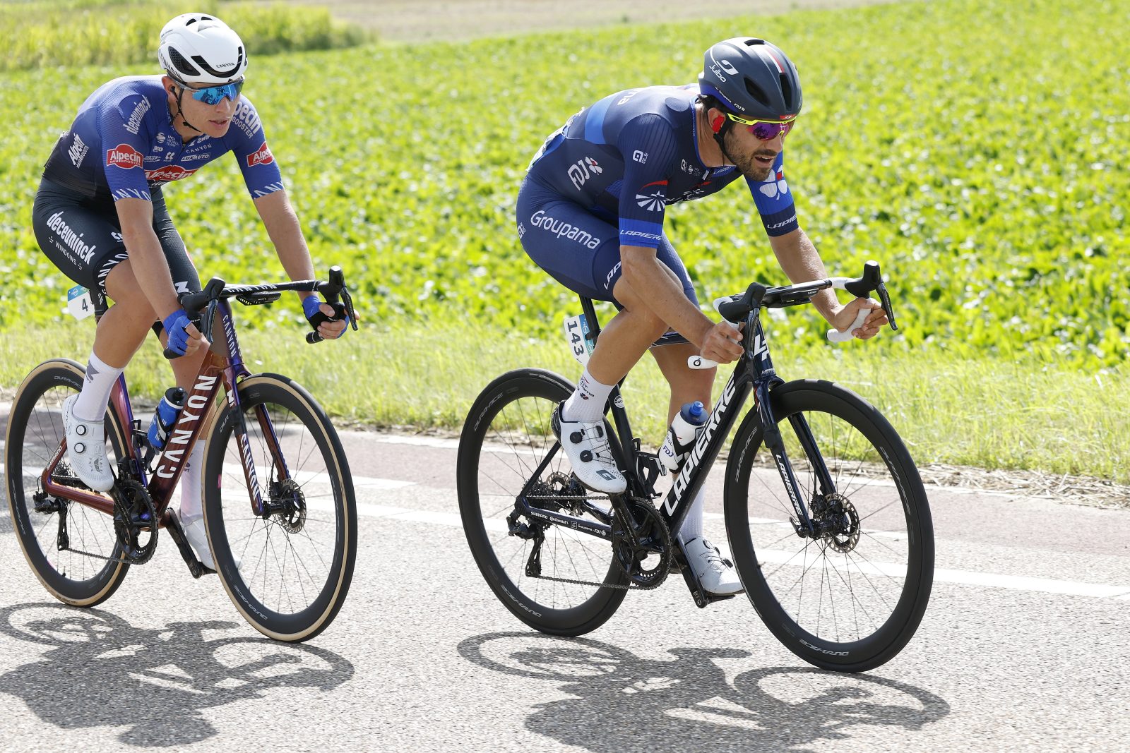 Les bonifications du kilomètre en or et de l’arrivée ont également été supprimées, donnant lieu à deux courses en une : l’une pour le général jusqu’à cinq kilomètres du but, et une autre pour la victoire d’étape jusqu’au bout. « Un deuxième départ a été donné avec le dernier écart enregistré, relatait Sébastien. L’échappée est repartie très vite, mais le peloton aussi car il se doutait que l’échappée allait saisir cette opportunité pour refaire le trou. Pour le final, on misait sur Lars, Valentin et Kevin en cas de mouvements, puis sur Jake et Laurence pour une éventuelle arrivée groupée ». Malheureusement, les hommes de la Groupama-FDJ ont été piégés à l’entame du dernier tour de circuit, dans l’enchaînement d’une bosse puis d’un court secteur pavé qui a scindé le paquet. L’échappée d’Olivier Le Gac a été reprise par un premier peloton d’une vingtaine d’hommes, et le Breton a bientôt retrouvé ses collègues au deuxième échelon de course. « On s’est fait un peu déborder, donc l’équipe a roulé avec Lars, Kevin puis Laurence qui a fini le boulot », précisait Sébastien. D’abord revenu à une dizaine de secondes, le deuxième peloton a ensuite reculé à plus de quarante secondes à vingt bornes du terme. Ses chances semblaient évaporées, mais à huit kilomètres du but, dans le sillage de Laurence Pithie, il s’est de nouveau rapproché à quelques dizaines de mètres. « On est revenu tout proche du groupe de tête, Jake a failli faire le jump mais ça ne l’a pas fait », confiait Sébastien.