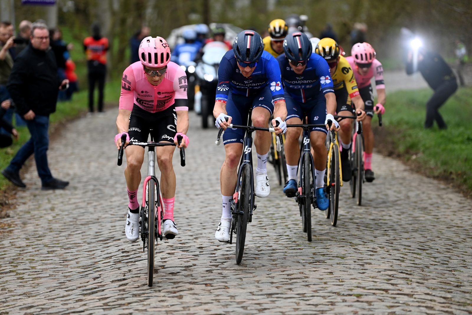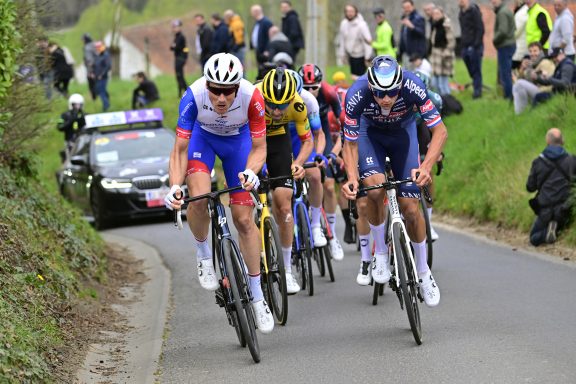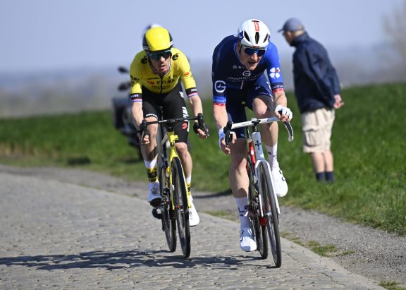 À quelques jours du Tour des Flandres, Valentin Madouas et Stefan Küng ont encore fait la démonstration de leur grande forme ce mercredi sur À Travers la Flandre. Membres d’un groupe réduit de favoris pendant une cinquantaine de kilomètres, ils n’ont pourtant pas été récompensés de leurs efforts. Un peu courts pour suivre le vainqueur de l’épreuve Christophe Laporte dans les derniers kilomètres, ils ont aussi été repris in-extremis par un petit peloton, devant donc se contenter de places en dehors du top-20. Une issue très frustrante, mais une prestation encourageante avant le deuxième Monument de l’année.