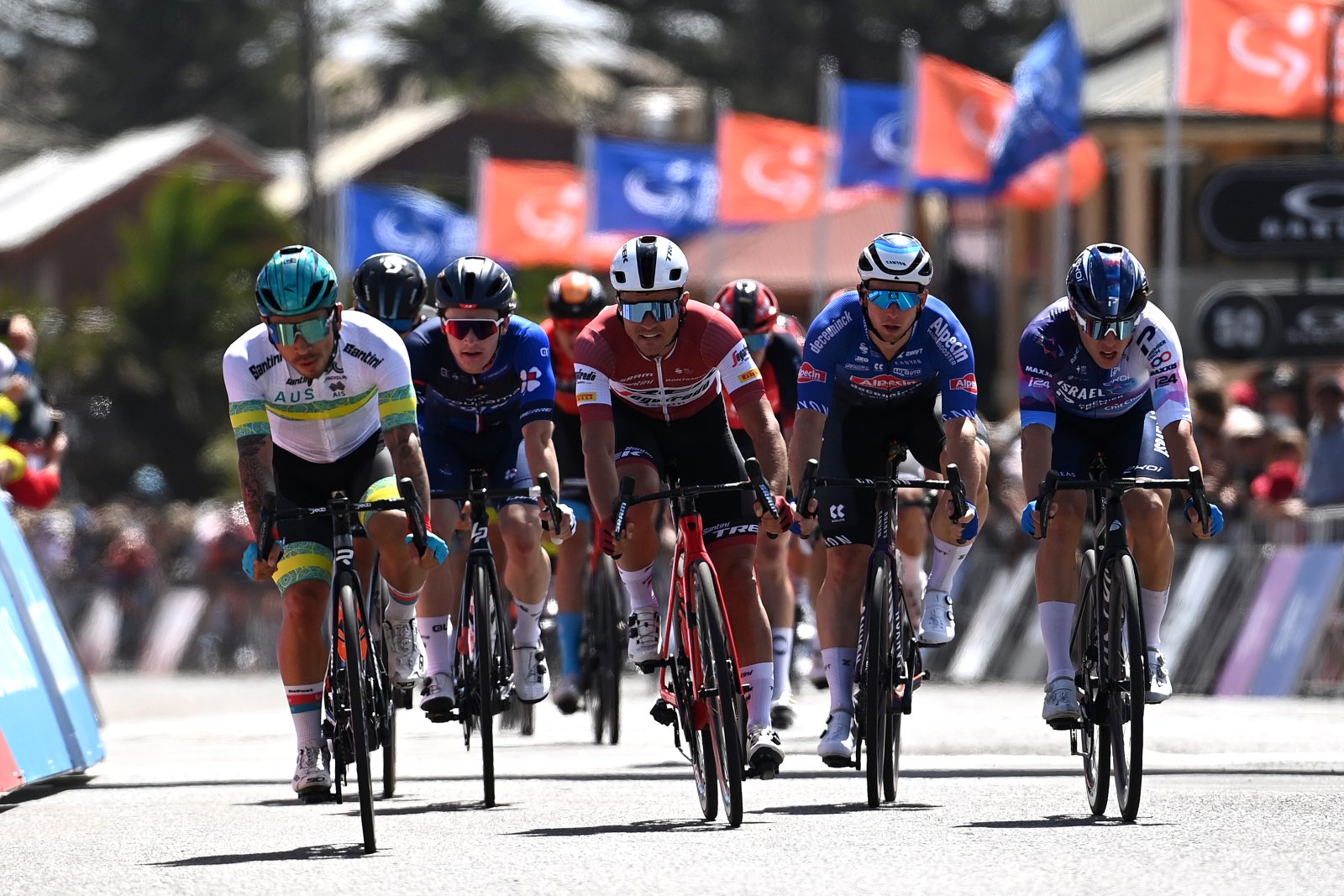 Sur le papier, les choses étaient supposées se corser quelque peu sur le Tour Down Under à l’occasion de la deuxième étape. En direction de Victor Harbor, un terrain accidenté et un vent turbulent pouvaient donner lieu à certains mouvements. Mais ce ne fût pas le cas d’entrée de jeu. « C’est parti très tranquillement car Jayco-AlUla voulait contrôler pour le sprint intermédiaire, racontait Paul Penhoët. C’était même ennuyeux au début, et on ne savait pas trop à quoi s’attendre, quelle stratégie allait adopter les grosses équipes ». « Le peloton dormait à moitié, qui plus est avec le vent de face », confirmait Jussi Veikkanen. Deux hommes se sont finalement extraits après une trentaine de kilomètres, Manuele Boaro (Astana Qazaqstan Team) et Johan Jacobs (Movistar), le peloton a temporisé pendant un temps, mais la course s’est lancée dans les premiers reliefs de la journée. « Dans une zone qu’on connaissait bien des éditions passées, un gros festival de bordures a commencé, relatait Jussi. Pendant vingt kilomètres, le peloton a été coupé en deux, au minimum. Dans le groupe de trente à l’avant, on avait nos trois coureurs pour le général : Rudy, Michael et Reuben. Ils ont été attentifs, c’était très bien. Mais finalement, le vent de face qui est intervenu après le deuxième sprint bonifications a calmé le groupe de tête et tout s’est reformé. Ensuite, c’était surtout usant mentalement ». « Le coup de bordure a un peu mis le feu chez tout le monde, complétait Paul. Après ça, ça a été nerveux sur tout le reste de l’étape, car tout le monde s’attendait à ce que ça puisse re-casser à chaque changement de direction ».
