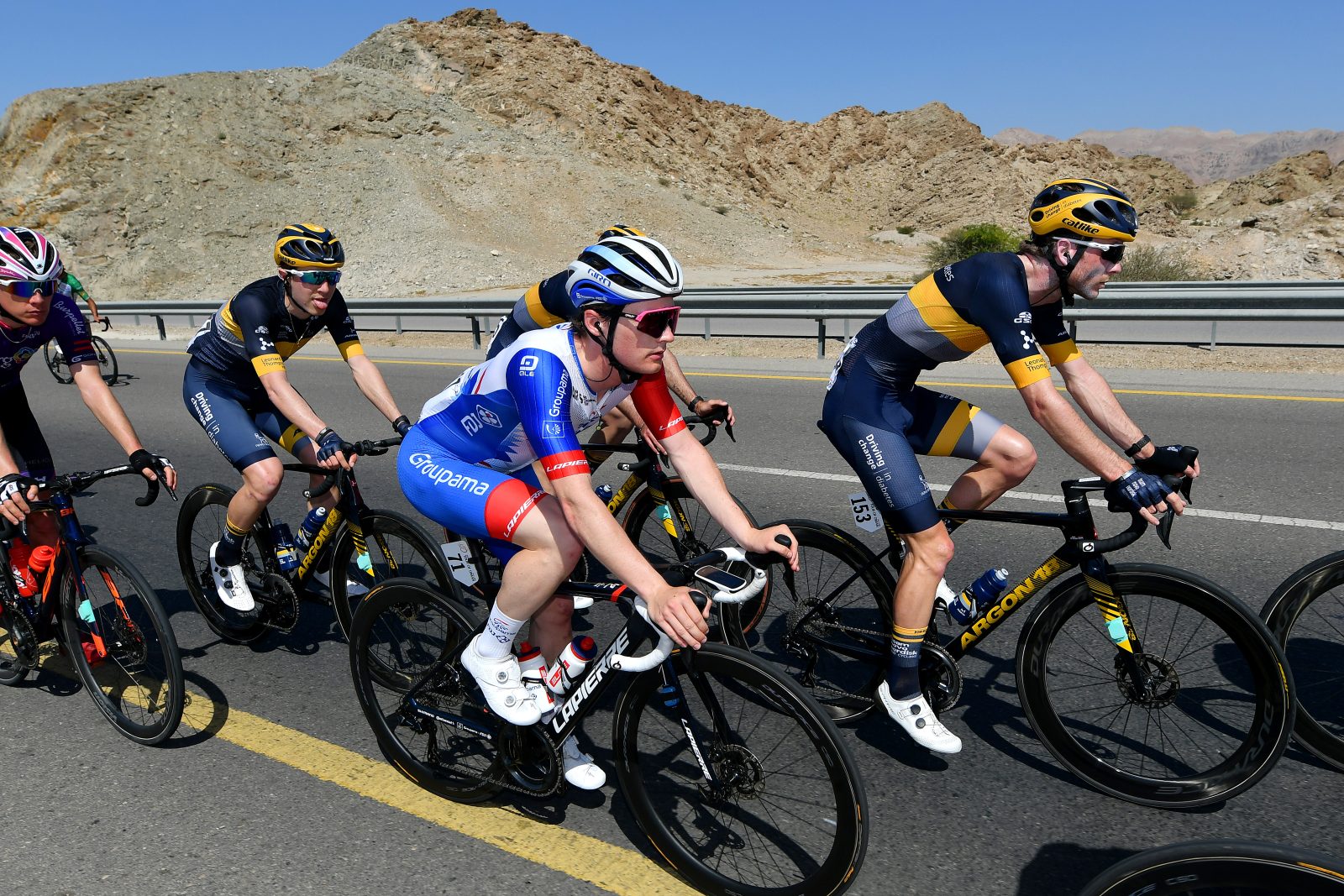 La topographie évoluait légèrement sur le Tour d’Oman ce samedi. Les sprinteurs laissaient ainsi leur place aux puncheurs pour un final explosif du côté de Qurayyat, dans une côte longue de près de trois kilomètres pour une pente moyenne de sept pourcents. Avant de se présenter au pied de ce juge de paix attendu, près de 180 kilomètres étaient néanmoins à parcourir sous des températures très chaudes. Cela n’a pas tempéré les ardeurs de Kevin Van Melsen (Intermarché-Wanty-Gobert Matériaux), Peio Goikoetxea (Euskaltel-Euskadi), Samuele Zoccarato (Bardiani CSF Faizane’), Louis Blouwe (Bingoal Pauwels Sauces WB), Angel Fuentes (Burgos-BH) et Umberto Poli (Team Novo Nordisk) qui ont formé l’échappée du jour dès les premières minutes de course. « C’était l’étape la plus longue de ce Tour d’Oman, précisait Sébastien Joly. C’était aussi la première journée un peu plus vallonnée. Dans la première partie, on passait d’ailleurs une difficulté qu’on empruntera demain sur le circuit final. C’était intéressant de la passer en course pour savoir un peu mieux où on mettrait les pieds. Aujourd’hui, on avait plutôt fait le choix de rester au chaud dans le peloton. Étant donné qu’il n’y avait pas d’écarts au classement général, l’échappée n’avait quasiment aucune chance d’aller au bout ».