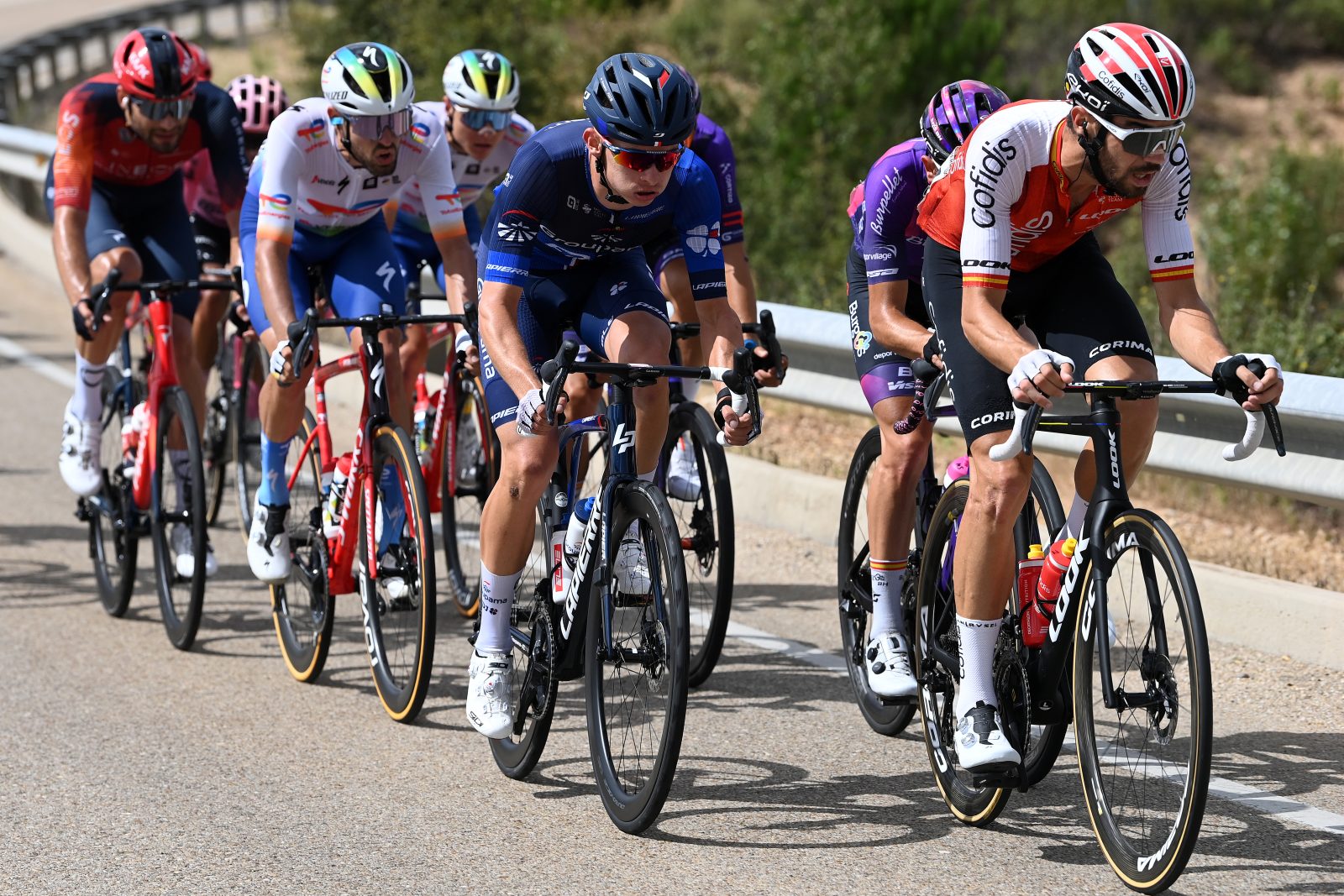 Pour Romain Grégoire et l’Équipe cycliste Groupama-FDJ dans son ensemble, l’ambition était claire ce mercredi au départ de Lerma, à l’occasion d’une véritable « course de côte » vers la Laguna Negra (6,5 km à 6,7%) à Vinuesa. « On avait prévu de jouer l’étape aujourd’hui, exposait Benoît Vaugrenard. L’étape était propice aux échappés ». Il fallait donc réussir à prendre les devants, mais une large partie du peloton avait une velléité similaire ce mercredi, ce qui a donc conduit à une bagarre féroce et ininterrompue pendant plus d’une heure. Ce n’est qu’après d’innombrables relances et cinquante bornes parcourues qu’un groupe a enfin pu se détacher. « On avait décidé de mettre Romain, Rudy ou Michael devant, reprenait Benoît. Au final, on en avait deux parmi les trois, plus Lewis. On était super bien représentés ». « Ça a bagarré pendant un long moment, sur un profil assez plat, donc ce n’était vraiment pas évident, complétait Rudy. On n’a vraiment rien lâché et on a réussi à l’intégrer avec deux belles cartes. C’était un bon départ ». « Tout était parfait, ajoutait enfin Romain. On avait Rudy et moi pour la montée finale et Lewis pour boucher les trous et nous aider du mieux possible dans la vallée ». Au sein d’une échappée de vingt-six coureurs, le trio de la Groupama-FDJ a notamment retrouvé Geraint Thomas, Filippo Ganna, Jesus Herrada, Andreas Kron, Andrea Piccolo, Luis Leon Sanchez ou bien Jonathan Caicedo.