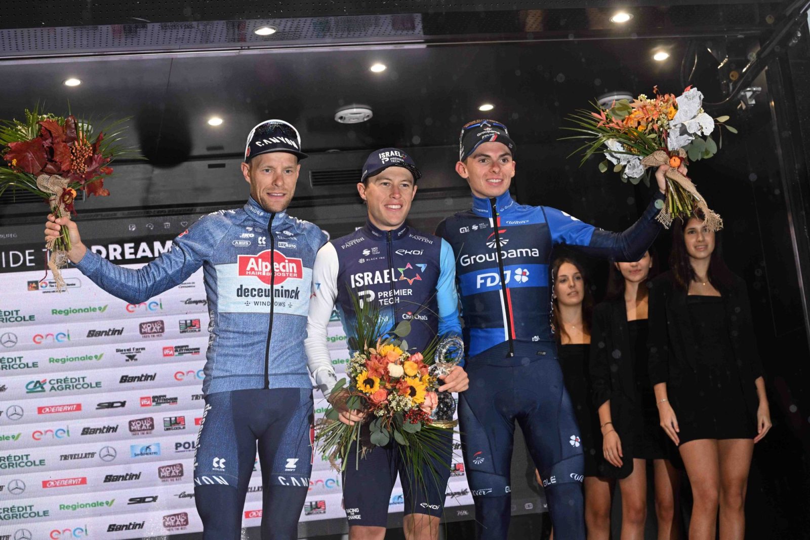 Romain Grégoire tourne autour. Dix jours après sa deuxième place sur la Coppa Agostoni, le coureur franc-comtois s’est flanqué d’un nouveau podium mercredi lors du Tour de Vénétie, avant-dernière épreuve de la saison pour lui et l’Équipe cycliste Groupama-FDJ. Parmi les plus costauds du jour, le jeune homme n’a toutefois pu éviter un sprint en comité réduit, en bosse, dont il a finalement pris la troisième place à Vicence. Une dernière opportunité s’offrira à lui dimanche sur la Veneto Classic.