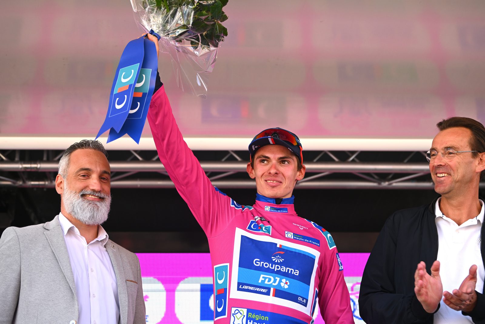 « On visait la victoire d’étape, et si on l’obtenait, on savait que le maillot rose ne serait pas loin, racontait Romain. Dans le final, j‘ai en revanche dû faire un choix. C’était l’étape ou le maillot. Quand je me suis retourné et que j’ai vu que c’était Hagenes dans la roue, je n’ai pas réfléchi. J‘ai roulé à bloc jusqu’à l’arrivée pour prendre le maillot rose ». Le Bisontin de 20 ans, vainqueur de la deuxième étape, a cette fois sacrifié ses chances de lever les bras pour s’assurer de prendre les rênes du général. Deuxième sur la ligne, cinq secondes devant les plus proches poursuivants et quatorze devant l’ancien leader Kasper Asgreen, il a alors rempli son objectif. « Les gars ont tous fait un super travail et Romain a fait la différence dans le final, soulignait Frédéric Guesdon. Il court juste, il a le punch, mais il a pu compter sur un super capitaine de route avec Olivier et sur une belle équipe. Tout le monde savait qu’il allait attaquer et pourtant seul Hagenes a réussi à le suivre. Nous sommes très contents de prendre le maillot mais nous allons rester concentrés jusqu’au bout ». « C’est vraiment grâce à mes coéquipiers que j’ai le maillot rose ce soir, assurait Romain. C’est une grande fierté d’être leader des 4 jours de Dunkerque. C’était l’objectif ce matin. Je sais que la course n’est pas finie, je reste très concentré pour demain. On a encore 195 kilomètres à faire, mais avec une telle équipe, je suis très confiant. Je sais qu’on va tenir la baraque ».