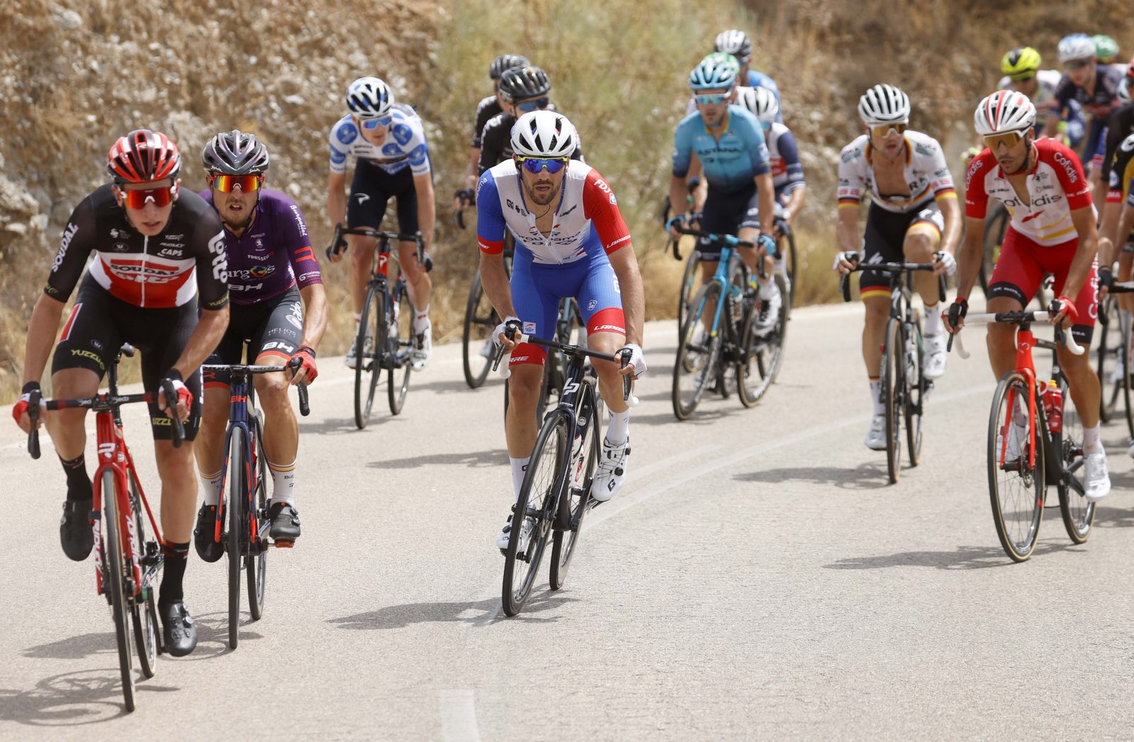 C’est par un sacré morceau, cumulant plus de 4700 mètres de dénivelé positif, que la première semaine de la Vuelta se concluait ce dimanche en direction de l’Alto de Velefique. Le début d’étape n’était en revanche pas si accidenté, et cela a donc donné lieu à une réelle course de mouvements pendant un long moment. « Le but aujourd’hui était d’être dans l’échappée, affirmait Thierry Bricaud. Arnaud a essayé, mais Olivier et Rudy ont surtout fait un super début d’étape. Ça a roulé fort pendant plus de deux heures, et quand c’est enfin sorti, ils étaient dedans. Nous avions deux coureurs de l’équipe sur un groupe de onze coureurs. Malheureusement pour nous, Ineos a relancé la course derrière alors que l’échappée avait déjà pris trois minutes d’avance ». Dans l’interminable ascension (29 km à 4,3 %) de l’Alto Collado Venta Luisa, le peloton s’est rapproché à une petite minute et cela a poussé certains membres de l’échappée à accélérer l’allure. À 70 kilomètres de la ligne, le deuxième du dernier Giro, Damiano Caruso, a ainsi filé seul en tête. « Quand il a attaqué, je n’avais plus de force, expliquait Rudy Molard. J’ai vraiment eu un coup de moins bien à la mi-étape. C’est dommage car on avait fait le plus dur avec Olivier en prenant l’échappée. Mais la bagarre a été si intense qu’on y a laissé beaucoup de forces. Après les efforts des derniers jours, notamment pour Arnaud, je sentais déjà que les jambes étaient un peu dures ce matin et le début d’étape ne m’a pas permis de récupérer. Soudainement, ça m’a lâché puis c’était alors très long jusqu’à l’arrivée. C’est comme ça, mais on va retenter, il y aura d’autres chances. On a quand même bien couru pour la prendre. Malheureusement, ce n’était pas ma meilleure journée ». « C’est dommage pour nous, mais il faut de nouveau retenir l’état d’esprit aujourd’hui », insistait Thierry.