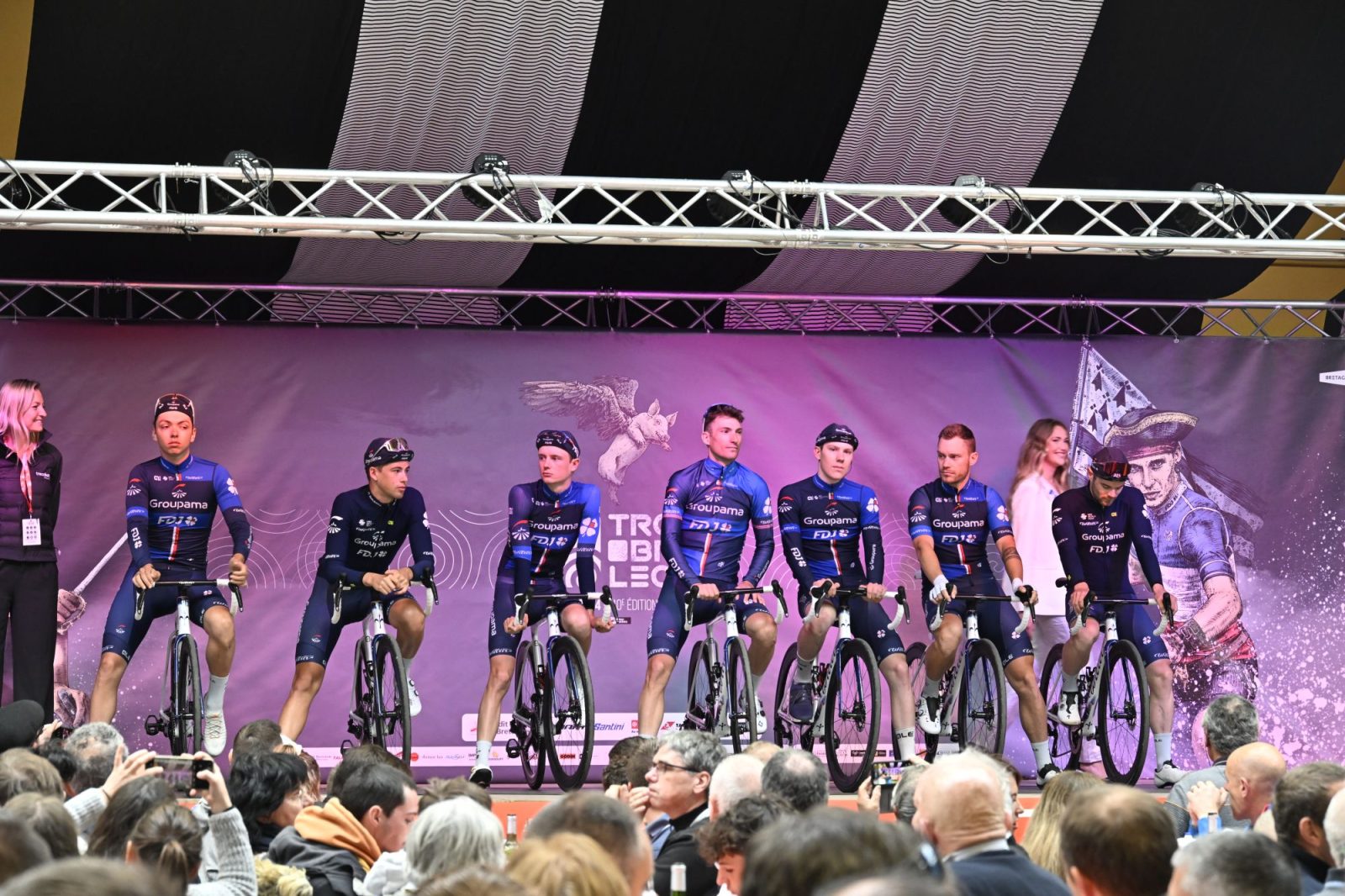 À l’occasion de la dixième manche de la Coupe de France FDJ, le peloton avait ce dimanche rendez-vous sur l’une des courses les plus singulières et les plus attendues du calendrier. À mi-chemin entre Paris-Roubaix et les Strade Bianche, le Tro Bro Leon proposait ainsi pas moins de vingt-sept secteurs empierrés, appelés « ribinoù », pour une longueur cumulée de vingt-neuf kilomètres sur les deux-cents composant le parcours de l’épreuve. Vingt-et-un des vingt-sept secteurs figuraient par ailleurs dans les soixante-dix dernières bornes, donnant lieu à un menu très condensé dans le final. Avant cela, sept coureurs ont pris part à l’échappée du jour, qui a un temps compté cinq minutes d’avance sur le peloton. « L’idée était de ne pas se faire piéger sur les 130 premiers kilomètres, insistait Thierry Bricaud. Il fallait surtout s’économiser au maximum, puis on savait qu’on rentrait vraiment dans la course à 70-80 kilomètres de l’arrivée, et que ça allait se décanter. Ce qu’il s’est passé ». C’est d’ailleurs l’Équipe cycliste Groupama-FDJ elle-même qui a scindé le peloton à travers les premiers secteurs décisifs. « Il fallait être placé car on enchaînait plusieurs ribinoù, on savait que ça allait s’écrémer par l’arrière donc on a préféré assurer, enchaînait Thierry. On a très bien géré ce moment et on avait encore cinq coureurs dans un groupe de trente ».