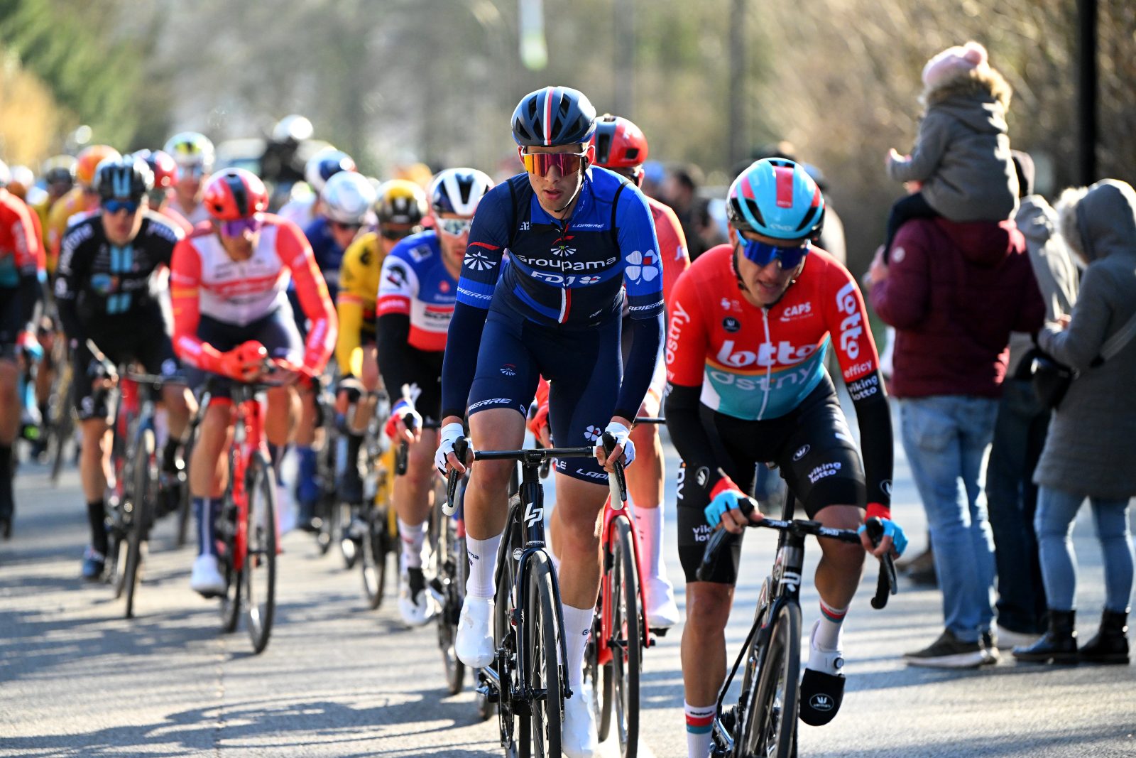 Le week-end d’ouverture aura été animé jusqu’au bout. Ce dimanche, ce n’est donc pas un sprint qui a décidé du vainqueur sur Kuurne-Bruxelles-Kuurne. À la suite de mouvements initiés à près de quatre-vingt-dix kilomètres de l’arrivée, Tiesj Benoot a enlevé la victoire dans un groupe de cinq échappés. Une minute plus tard, Sam Watson (18e) et Olivier Le Gac (19e) ont pris place dans le top-20 du jour au sein d’un peloton réduit, duquel a malheureusement été éliminé Paul Penhoët suite à un accrochage plus tôt. L’Équipe cycliste Groupama-FDJ fera son retour pour des semi-Classiques du Nord dans une quinzaine de jours, avec la Nokere Koerse et le Grand Prix de Denain.