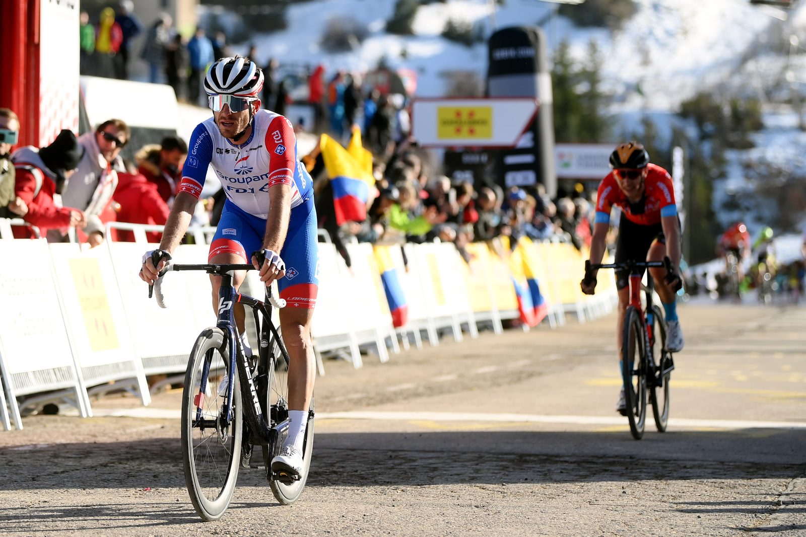 Au sortir de deux premières journées mouvementées, notamment de par le vent, le Tour de Catalogne retrouvait ce mercredi une physionomie de course plus traditionnelle à l’occasion de son premier acte montagneux, vers La Molina. Avant d’aborder une série de montées et descentes, c’est un très long faux-plat de plusieurs dizaines de kilomètres qui lançait la journée. « Il y avait deux scénarios possibles ce matin, exposait Philippe Mauduit. Soit il y avait une grosse bagarre pour prendre l’échappée et un bon groupe pouvait se détacher et ambitionner d’aller chercher l’étape. Soit ça bagarrait mais seuls 3-4 coureurs sortaient, auquel cas l’échappée avait très peu de chances d’aller au bout ». C’est finalement la deuxième solution qui a été choisie par le peloton après environ vingt minutes de lutte. Simone Petilli (Intermarché-Wanty Gobert), Casper Pedersen (DSM), Ander Okamika (Burgos-BH) et Mikel Bizkarra (Euskaltel-Euskadi) ont dès lors pris les devants, et si le peloton a laissé l’écart grimpé jusqu’à huit minutes, le rythme est devenu plus sérieux à compter de la montée de Mont-Louis, la première du jour. Une cinquantaine de kilomètres plus loin, au sommet de la deuxième ascension, la Collada de Toses, l’Équipe cycliste Groupama-FDJ se repositionnait pour entamer correctement la descente vers le pied de La Molina. Là, l’échappée ne disposait plus que d’une petite minute d’avance et c’est bien une bagarre entre favoris qui s’est profilée. « Dans ce scénario, on devait rester au chaud dans le peloton, faire la montée finale et attendre que les leaders soient isolés pour essayer d’attaquer », reprenait Philippe.