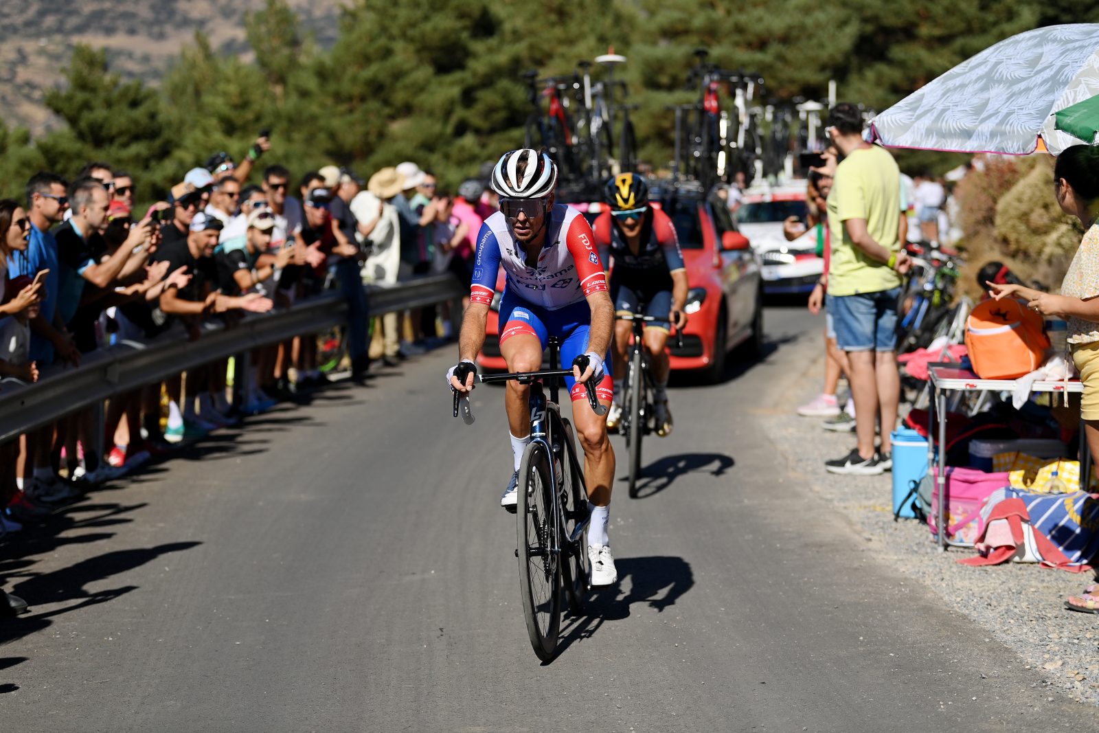 À l’avant, les deux hommes de la Groupama-FDJ ont notamment retrouvé les déjà vainqueurs d’étapes Richard Carapaz, Jay Vine, Marc Soler et Louis Meintjes, ou encore le lauréat du Giro Jai Hindley, le Colombien Rigoberto Uran ainsi que le Néerlandais Thymen Arensman. « Il y avait 4-5 coureurs à moins d’un quart d’heure au général, Quick-Step Alpha Vinyl a un peu pris peur et a gardé l’échappée à 4-5 minutes avant qu’AG2R-Citroën ne vienne leur donner un coup de main car craignant pour le classement de O’Connor, expliquait Philippe Mauduit. Jumbo-Visma a ensuite essayé de renouveler l’opération d’hier, et ça a donc donné une course super rapide et super dense, avec un peloton qui a terminé par grappes de 4-5 coureurs ». Au pied de la Sierra Nevada, Sébastien Reichenbach figurait encore dans l’échappée de tête réduite à une dizaine d’unités, mais dont l’avance n’était plus que de 3’30. L’allure s’est donc accélérée pour espérer la victoire d’étape, et le Suisse en a fait les frais. Il a été distancé dans les passages les plus durs et n’a pu se mêler à la bataille pour la gagne, finalement enlevée par Thymen Arensman devant les favoris de la Vuelta. « Je ne me sentais pas trop mal, mais c’était une échappée de costauds et il m’a manqué un peu d’énergie pour basculer avec le groupe de tête sur la grande route de la Sierra Nevada, commentait plus tard Sébastien. Les pourcentages étaient moins importants ensuite et cela m’aurait emmené plus loin. Cela étant, je n’ai pas de regrets… J’ai fait beaucoup d’efforts dans le vide cette semaine et la fatigue se fait sentir ».