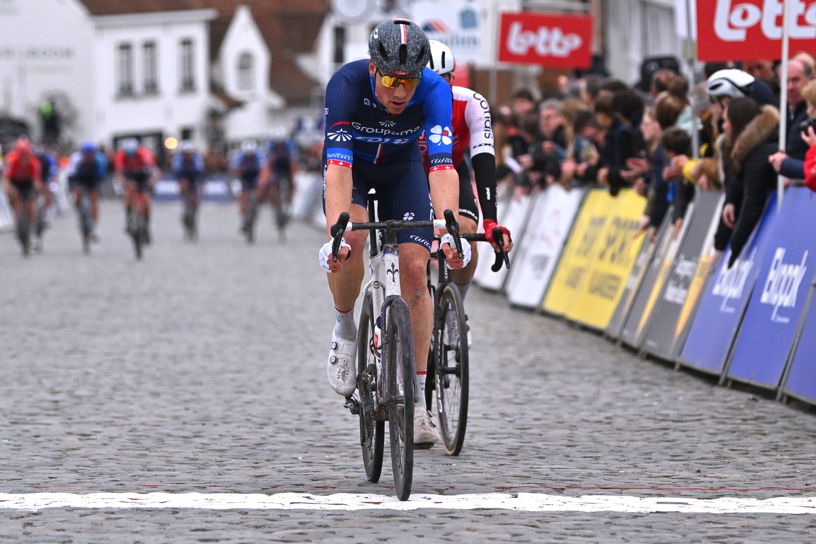 Dans les dix derniers kilomètres, près de soixante coureurs étaient encore présents pour la bataille finale, et si Wellens a lancé une dernière cartouche à quatre bornes du but, le regroupement a bien eu lieu pour le sprint. Avant l’emballage sur les pavés du Nokereberg (400m à 4%), Lewis Askey a tenté de se faire une place lors de l’approche tortueuse en faux-plat descendant. Une chute peu après la flamme rouge l’a toutefois contraint à freiner, et à laisser une dizaine d’hommes se disputer la victoire. « Il a été gêné, mais il était sans doute un petit peu trop loin puisque les favoris sont passés, confiait Frédéric. Ce n’est pas non plus un sprint surprise car les favoris sont aux premières places ». Tim Merlier a ainsi disposé de Fabio Jakobsen et Jasper Philipsen dans les derniers hectomètres, alors que le Britannique de l’Équipe cycliste Groupama-FDJ devait se contenter de la treizième place, trois rangs devant Stefan Küng (16e). « On n’a pas eu le résultat qu’on espérait, mais c’était une bonne journée, concluait Frédéric. C’était aussi une remise en route pour Marc et Stefan notamment. On va enchaîner demain avec le Grand Prix de Denain, une course qui nous convient aussi et où on ira chercher le meilleur résultat possible ». « C’était une bonne course en Belgique, avec pas mal de pavés, et c’était donc une bonne opportunité pour les jeunes de prendre des repères sur ces routes, ajoutait Stefan. Demain, ce sera un bon test en vue de Paris-Roubaix. Ces deux courses me servent aussi personnellement pour améliorer ma condition en vue des Classiques belges ». Jeudi, douze secteurs pavés (22,6 km) sont prévus dans les 80 derniers kilomètres de l’épreuve nordiste.