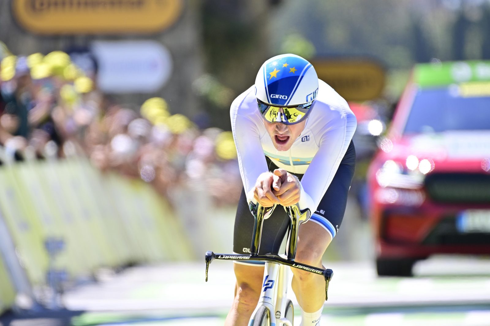 Dès l’issue, défavorable, du premier contre-la-montre à Laval, Stefan Küng avait pris rendez-vous pour le second chrono du Tour entre Libourne et Saint-Émilion, prévu à la veille des Champs Élysées. Au sortir d’une solide traversée des Pyrénées, le champion de Suisse abordait cette échéance dans de bonnes dispositions, sur un parcours de 30,8 kilomètres très roulant et favorable aux purs spécialistes. Avant que le champion d’Europe ne s’élance, aux alentours de 15h30, c’est d’abord le médaillé d’argent des derniers championnats de France de la discipline qui a pris le départ. Bien en jambes, Bruno Armirail est allé réaliser un très solide temps qui l’a installé à la troisième place provisoire à son arrivée. Au bout du compte, l’Occitan a hérité d’une honorable douzième place en troisième semaine de son premier Tour de France. « J’ai fait un chrono correct, expliquait-il. Mais du fait d’avoir été malade dernièrement, je n’avais pas autant de force que d’habitude. Je l’ai ressenti aujourd’hui. J’aurais bien aimé faire ce contre-la-montre en pleine possession de mes moyens, mais j’espère que j’aurai l’occasion de le faire ces prochaines années ».