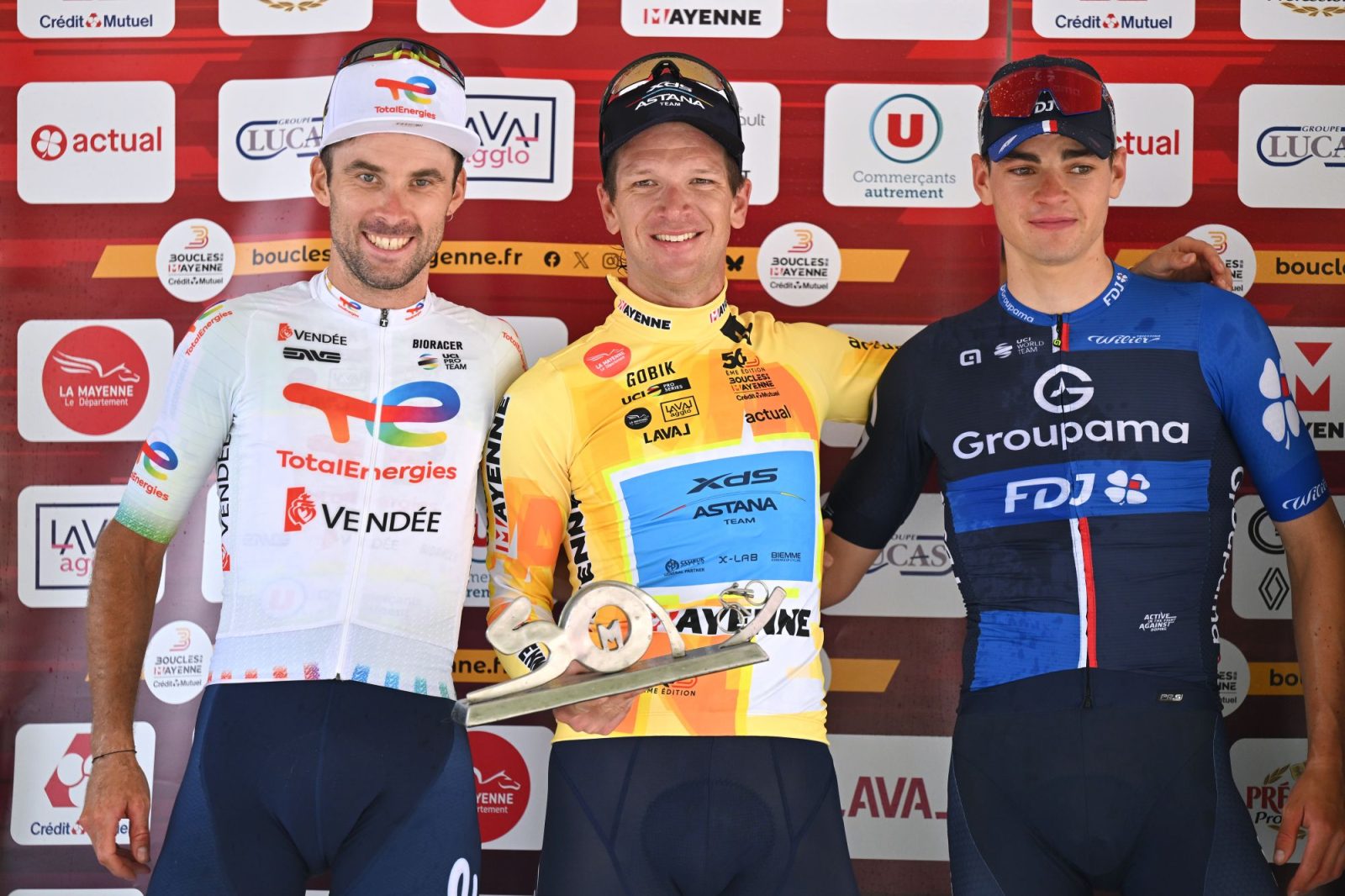 La troisième et dernière étape de la cinquantième édition des Boucles de la Mayenne aura finalement accouché d’un statu quo au classement général. Thibaud Gruel a bien tenté de gratter les quelques secondes qui le séparaient du maillot jaune, abandonné hier, mais il n’a pu trouver l’ouverture, en début ou en fin de course ce dimanche. Le Tourangeau s’est donc contenté de la troisième place finale, tandis que Paul Penhoët a accroché la cinquième du jour à Laval.