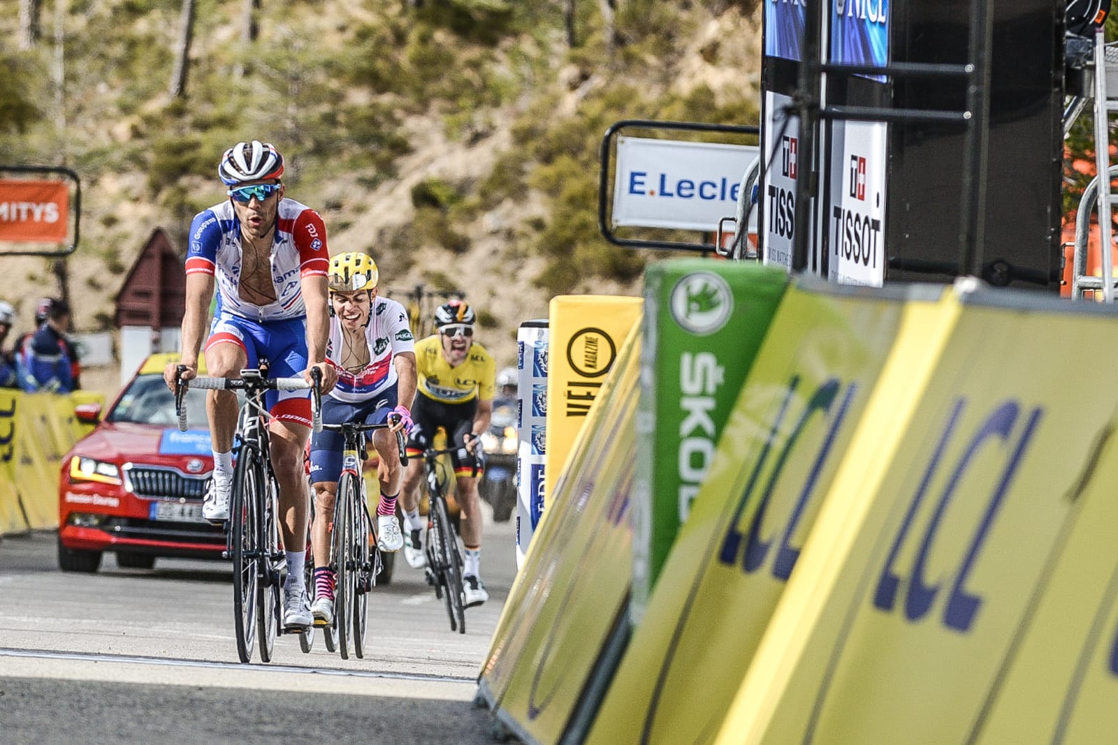 Derrière le Colombien, aussi intouchable que sur le Mont Ventoux et le Col d’Eze ces dernières semaines, Thibaut Pinot s’est fait plaisir à un deuxième échelon avec les quatre seuls coureurs qui allaient finalement le devancer au général. Malgré plusieurs accélérations, le grimpeur franc-comtois a dû attendre les derniers hectomètres pour faire la différence et décrocher une très jolie, et réconfortante, troisième place au sommet. « C’était une ascension assez rapide et roulante, commentait Thibaut après-coup. Il y avait pas mal de vent sur les dix premiers kilomètres et il n’y avait pas grand-chose à faire. Dans le final, tout le monde était fatigué après le gros rythme de la journée, et Quintana était au-dessus, comme depuis le début de saison. Derrière, on a joué la meilleure place possible. Je suis content de faire troisième, ça me rassure quand même ». Il en a d’ailleurs profité pour accrocher le top 5 final. « Le bilan est au bout du compte satisfaisant, ajoutait-il. Si on m’avait dit que j’allais faire cinquième au départ de Paris-Nice, j’aurais signé de suite vu les mauvaises sensations qui étaient les miennes à la sortie du Tour du Haut-Var. Je suis content d’avoir été acteur aujourd’hui ».