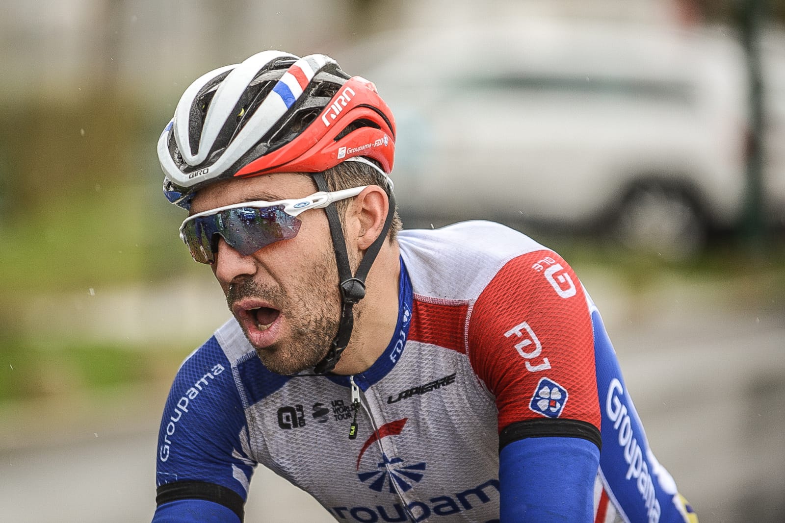 Avant de s’emballer, la journée a débuté sur des standards relativement calmes et classiques. Une petite échappée de deux hommes, avec Romain Combaud (Nippo-Delko One Provence) et Jonathan Hivert (Total-Direct Energie) s’est ainsi extirpée assez vite avec la bénédiction d’un peloton pas encore prêt à bagarrer. Le duo a ainsi pu prendre jusqu’à cinq minutes avant que la tension ne grimpe derrière. Ce qui s’est produit une première fois après à peine cinquante kilomètres. S’en est suivie une première empoignade de trente minutes avant que les choses ne rentrent dans l’ordre et que l’échappée ne soit – déjà – réintégrée. Puis, la course a pris un nouveau tournant à près de 70 kilomètres de l’arrivée, dans une nouvelle section exposée au vent, alors que plusieurs chutes survenaient au sein du peloton. Rudy Molard et Olivier Le Gac se retrouvaient dans une première bordure de seize hommes alors que Thibaut Pinot prenait place dans la poursuite.