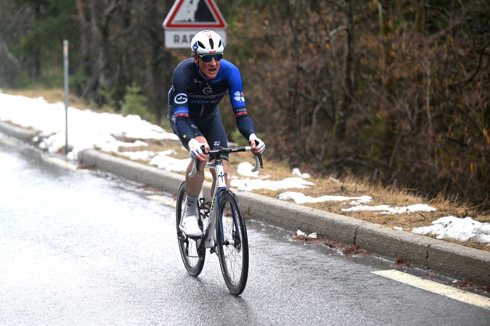« Elles étaient très mauvaises dans le final en particulier, avec la pluie et le froid comme hier, confirmait Benoît. C’est une nouvelle journée où les organismes ont été beaucoup sollicités ». Au jeu du chat et la souris, l’échappée a donc eu gain de cause ce samedi, puisqu’elle a pu entamer la montée d’Auron (7,3 km à 7%) avec un capital temps de deux minutes. Johan Jacobs et Stefan Küng n’ont pu rivaliser avec les meilleurs grimpeurs du groupe, parmi lesquels Michael Storer, vainqueur au sommet et sous des flocons de neige. Au sein du peloton, Guillaume Martin-Guyonnet s’est accroché jusqu’à trois kilomètres de l’arrivée, avant de céder quelque peu, rejoignant la ligne à environ une minute des principaux favoris. « Guillaume a été un peu en difficulté, confirmait Benoît. Il n’aime pas ce genre d’étape, très courte, avec une ascension sèche. Il préfère quand il y a plusieurs ascensions. On verra ce qu’il se passera demain, mais on ne va pas se contenter d’une quatorzième place au général. Je pense qu’il y a quelque chose à faire. À nous d’être vigilants, attentifs et malins pour essayer de grappiller au général ou de se rapprocher de la victoire d’étape ».